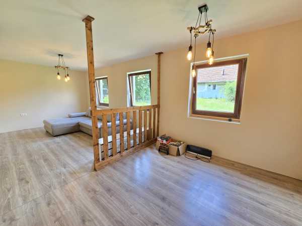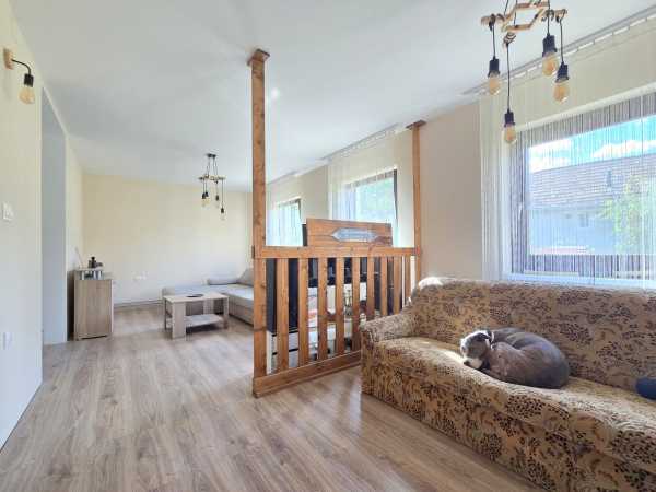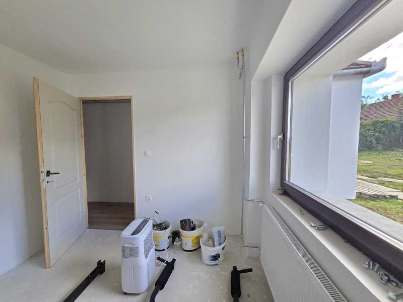 Novembertől elérhetővé válik teljes körűen felújított, 104 m²-es családi ház Nemesrádón, Zala megye csendes, barátságos településén. A ház tágas tereivel, világos nappalijával és eldugott elhelyezkedésével ideális választás azoknak, akik nyugalomra vágynak. Irányár: 46 500 000 Ft (≈ 448 000 Ft/m²) Főbb adatok Alapterület: 104 m² Déli fekvés Szobák: 3 szoba + nappali + konyha-wc + fürdő + kazánház + előtér Falazat: tégla / kő / vegyes - tégla alappal Állapot: teljes felújítás alatt Tehermentes, CSOK és 3% hitel igényelhető Felújítás és műszaki tartalom A felújítást műszaki ellenőr felügyelte, a ház minden eleme átgondoltan, hosszú távra készült: Új cserepeslemez tető és ereszcsatorna (tetőcsere folyamatban - tégla színben) Hőszigetelés: 5–10 cm vastagságban Új víz-, szennyvíz-, villany- és gázrendszer Fűtés: Ariston kombi gázkazán, lapradiátoros hőleadókkal Melegvíz: villanybojler Elektromos teljesítmény: 32 A Fa hőszigetelt nyílászárók (kivéve konyha, fürdő, gépház) Minden beépített gép, lámpa, csaptelep garanciális! Terek, elrendezés A ház központi eleme a 24 m²-es, Porotherm téglából épült világos nappali (melyben a térelválasztó fal bontható), három nagy ablakkal – napfényes! Fürdőszoba: 11,5 m² – sarokkád, zuhanyzó Konyha–étkező: étkezőpulttal, mosogatógép kiállással A közlekedő és előtér tágas elrendezésnek köszönhetően akár gardrób vagy háztartási helyiség is könnyen kialakítható. Telek és melléképületek A 1466 m²-es telek két autóbejáróval rendelkezik, csendes mellékutcában, két közvetlen szomszéddal. 2 tégla melléképület: Pajta – alápincézett, víz bevezetve Egykori kovácsműhely – felújítást igényel Ásott kút és kerti csap is található a telken. Környék, infrastruktúra Nemesrádó kb. 330 fős zalai település, egyre több német lakóval és aktív közösségi élettel. A faluban bolt, könyvtár, játszótér is működik. Kiváló elhelyezkedés: Zalaegerszeg: 20 km Keszthely: 33 km Nagykapornak: 6 km – szupermarket, gyógyszertár, benzinkút, bölcsőde Összegzés Ez az ingatlan igazi „vidéki otthon”, ahol a modern technikai megoldások találkoznak a zalai táj nyugalmával. Tökéletes választás lehet családoknak, akik csak szeretnének költözni, és hosszú távra keresnek megbízható, minőségi otthont. Érdeklődés és megtekintés: További információért, finanszírozási tanácsadásért és időpont egyeztetésért keressen bizalommal – irodánk minden lépésben segít.