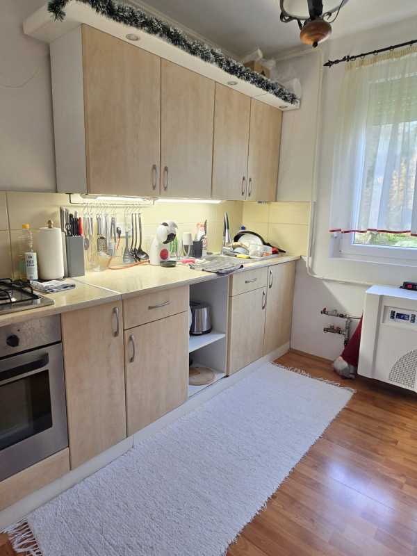 Ha csendes, zöld környezetben keresel praktikus elrendezésű, világos lakást, ahol a gyerekeknek vagy a kutyának is jut saját kert, ezt érdemes megnézned. A lakás jellemzői: Tulajdoni lap szerint:62 m² , 3 szoba, első emeleti elhelyezkedés Az elmúlt 5 évben részben felújított Új, 32A-os áramhálózat, korszerűsített fűtés és nyílászárók Fűtés: parapetes gázkazán lapradiátorokkal + hűtő-fűtő klíma Meleg víz: villanybojler (éjszakai áram) Elrendezés: közlekedő, konyha + kamra, nappali, hálószoba, gyerekszoba, külön fürdő és WC Saját erkély a nappaliból Kert és parkolás: A társasház udvara osztatlan közös tulajdon, de négy részre osztva – az adott lakás tulajdonosa elkerítheti a saját, körülbelül 300 m²-es telekrészt, melyet fák szegélyeznek. A lakáshoz könnyűszerkezetes autóbeálló tartozik. Társasház: 1970-es években épült, tégla falazatú, alápincézett épület (külön tárolók!) Tető: pala + villasz borítás A ház külső felújításra, szigetelésre szorul, viszont kis lakóközösség és nyugodt környezet jellemzi. Befektetésnek is ideális: A lakást jelenleg megbízható bérlők lakják, akik szívesen tovább bérelnék az ingatlant az új tulajdonostól is.