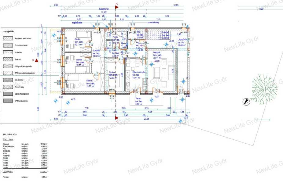 Győr-Moson-Sopron vármegye, Győr Szabadhegy eladó újépítésű 5 szobás lakás Szabadhegyen jelenleg is épülő 3 lakásos társasház földszinti lakása eladó. A lakás 114 m2. Egy saját udvari parkolót is szükséges megvásárolni, melynek ára + 4MFt+Áfa. A társasház 746 m2-es telekre épült. Földszinten helyezkedik el ez a lakás, az emeleten pedig másik kettő. Elosztása: amerikai konyhás nappali étkezővel, négy hálószoba, fürdőszoba káddal, WC-vel és egy külön WC, terasz. A készültségi szint figyelembevételével még módosításokra van lehetőség. Fűtése egyedi kondenzációs gázkazán padlófűtéssel a teljes lakásban. Légkondicionáló előkészítéssel fűtéskészen eladó, mely várhatóan év végén kerül átadásra. Természetesen kulcsrakész befejezésre is van lehetőség. A társasházban eladó még: Emelet: 87 m2-es lakás+13,4 m2 erkély: 72.250.000 Ft Emelet: 84 m2-es lakás+4,41 m2 erkély: 75.650.000 Ft Ne maradjon le róla! A jelen hirdetésben rögzített, az ingatlannal kapcsolatos adatok, információk a megbízó tájékoztatása alapján kerültek meghatározásra. Irodánkban az alábbiakkal tudjuk segíteni a gyors és megbízható ügyintézést: -bankfüggetlen hitelügyintézés, CSOK Plusz -energetikai tanúsítvány -értékbecslés -ügyvédi szerződések, jogi tanácsadás -építész, tervezés, kivitelezés, felújítás, villanyszerelés