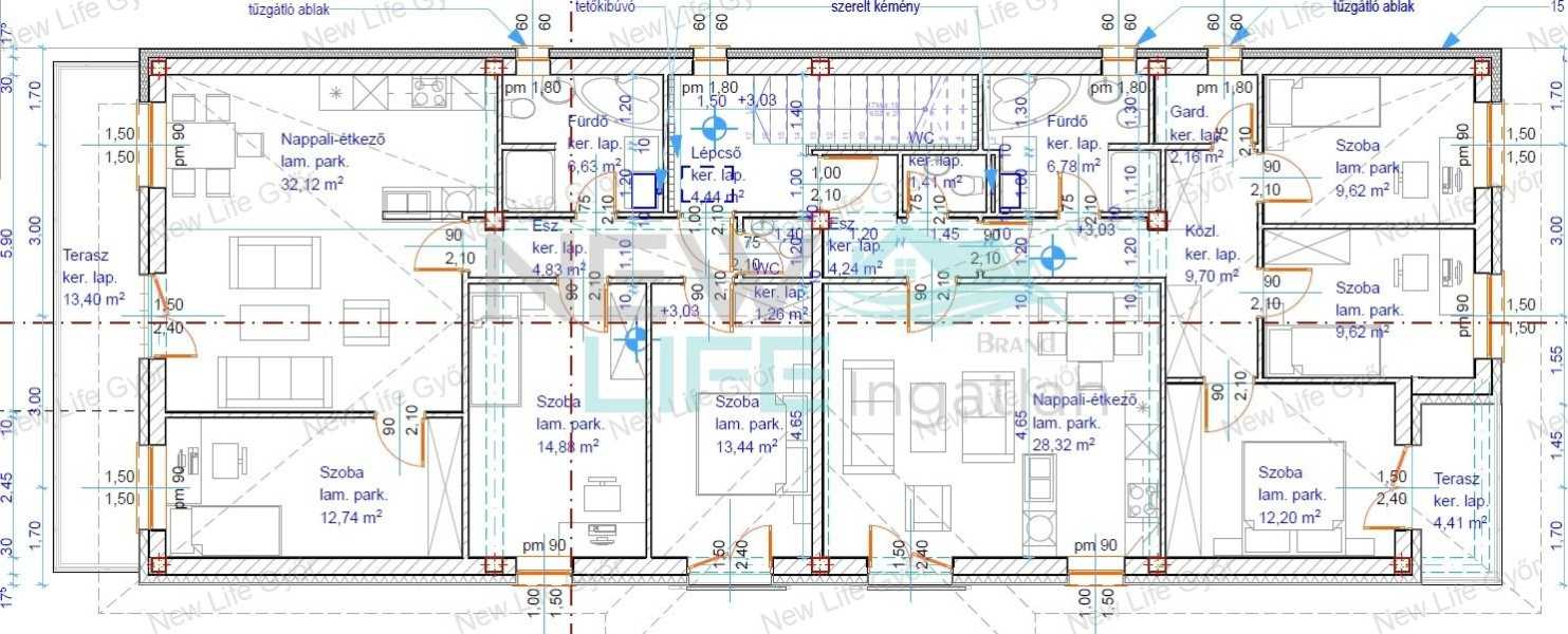 Győr-Moson-Sopron vármegye, Győr Szabadhegy eladó újépítésű 4 szobás lakás Szabadhegyen jelenleg is épülő 3 lakásos társasház első emeleti nagy erkélyes lakása eladó. A lakás 84 m2+ 13,4 m2 terasz, melyhez egy saját udvari parkolót is szükséges megvásárolni, melynek ára + 4MFt+Áfa. A társasház 746 m2-es telekre épült. Földszinten helyezkedik el ez a lakás, az emeleten pedig másik kettő. Elosztása: amerikai konyhás nappali étkezővel, három hálószoba, fürdőszoba káddal, WC-vel és egy külön WC, nagy (13,4 m2) terasz. A készültségi szint figyelembevételével még módosításokra van lehetőség. Fűtése egyedi kondenzációs gázkazán padlófűtéssel a teljes lakásban. Légkondicionáló előkészítéssel fűtéskészen eladó, mely várhatóan év végén kerül átadásra. Természetesen kulcsrakész befejezésre is van lehetőség. A társasházban eladó még: Földszint: 114 m2-es lakás: 89.900.000 Ft Emelet: 84 m2-es lakás+4,41 m2 erkély: 72.250.000 Ft Ne maradjon le róla! A jelen hirdetésben rögzített, az ingatlannal kapcsolatos adatok, információk a megbízó tájékoztatása alapján kerültek meghatározásra. Irodánkban az alábbiakkal tudjuk segíteni a gyors és megbízható ügyintézést: -bankfüggetlen hitelügyintézés, CSOK Plusz -energetikai tanúsítvány -értékbecslés -ügyvédi szerződések, jogi tanácsadás -építész, tervezés, kivitelezés, felújítás, villanyszerelés