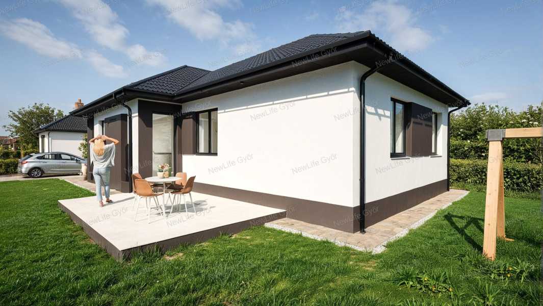 Győr-Moson-Sopron Vármegye, Győrújfalu új építésű 4 szobás ikerház eladó. GYŐRÚJFALU Magyarország északnyugati részén, Győrtől 6 kilométerre helyezkedik el, az 1401-es út mentén. Lakossága kb. 2000 fő. Az ikerház elhelyezkedését tekintve központi helyen van, de a főúttól kicsit távolabb. Egy 1323 m2-es telken helyezkednek el, közös fala nincs, tárolókon keresztül csatlakoznak egymáshoz. Utcafronti (L1) ház: 94 m2 + 17 m2 tároló 517 m2-es telek, hátsó (L2) ház: 103 m2+8 m2 tároló + 18 m2 terasz 806 m2 telken. Tárolók csak a kulcsrakész befejezéshez kérhetők. AZ ÉPÜLET Az 5 szobás (L2), nettó: 103 m2-es ikerház fűtéskész állapotban kerül átadásra várhatóan: 2025 második felében. Természetesen, kulcsrakész befejezésre is van lehetőség. Két ikerház elhelyezkedése: egymás mögött helyezkednek el, tárolókon keresztül csatlakoznak. Elosztása: Előtér, közlekedő, amerikai konyhás nappali étkezővel, kamra, négy szoba, két fürdőszoba, külön WC, háztartási helyiség. MŰSZAKI TARTALOM: Teherhordó falazat 30-as tégla falazattal készülnek, 15 cm-es hőszigetelő rendszerrel. Fafödém, 30-cm üveggyapot hőszigeteléssel. Terrán fekete tetőcserép, antracit bádogos szerkezet és esőcsatorna. Padló hőszigetelés 12 cm-es lépésálló. Homlokzati fehér műanyag nyílászárók hő- és hangszigetelt 5 légkamrás, 3 rtg üvegezéssel, műanyag 5 ponton záródó hőszigetelt fehér bejárati ajtó. A fűtésről és melegvízellátásról kondenzációs kombi gázkazán gondoskodik (Saunier Duval), hőleadás padlófűtésen keresztül történik. Az ár a telekhányadot már tartalmazza. Kisebb mértékű változtatás az építés előrehaladottságától függően lehetséges, műszaki tartalom emelhető felár ellenében. (akár hőszivattyús fűtési rendszer, napelem is kérhető) A családi házra CSOK Plusz, kedvezményes lakáshitel, illetékmentesség is igényelhető/felvehető, így az összes támogatás kihasználható rá, ami aktuálisan elérhető. KI ÉPÍTI? A vállalkozó és összeszokott csapata, számos referenciával rendelkeznek, lassan 20 éve építenek, befejeznek, felújítanak. Ez alatt az idő alatt kialakult egy rutin, a házak terveit folyamatosan alakítják, mindig a kor legfontosabb követelményeinek és trendjeinek figyelembe vételével. Tudják, amit vállalnak azt precízen, pontosan megvalósítják, határidők, igények betartásával. Ne maradjon le róla! A jelen hirdetésben rögzített, az ingatlannal kapcsolatos adatok, információk a Megbízó tájékoztatása alapján kerültek meghatározásra. Irodánkban az alábbiakkal tudjuk segíteni a gyors és megbízható ügyintézést: -bankfüggetlen hitelügyintézés, CSOK Plusz -energetikai tanúsítvány -értékbecslés -ügyvédi szerződések, jogi tanácsadás
