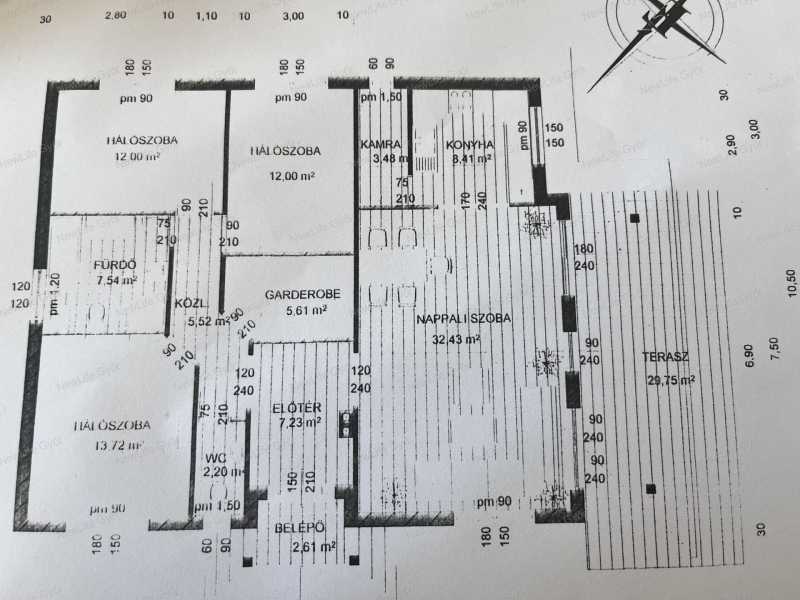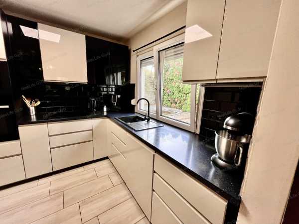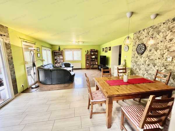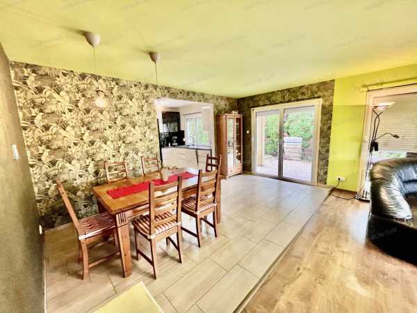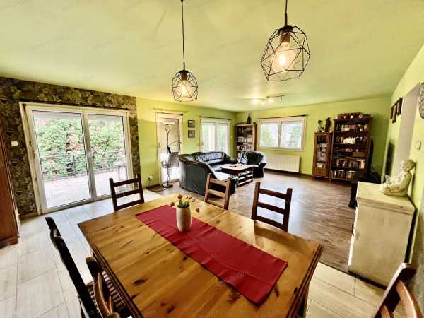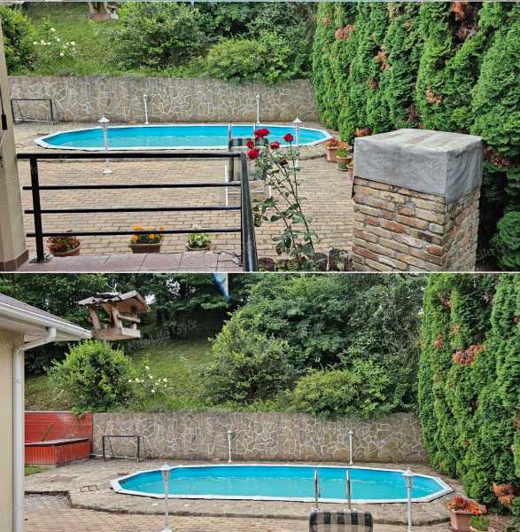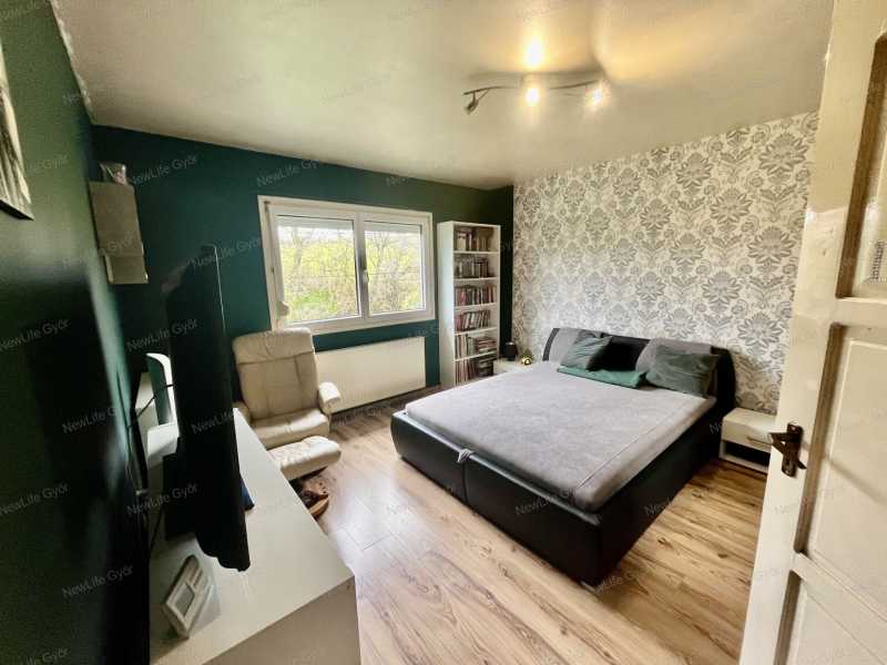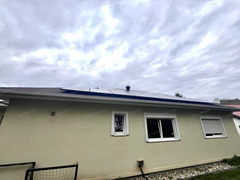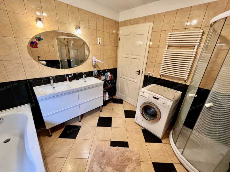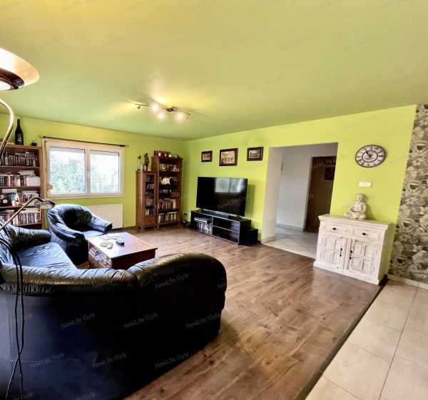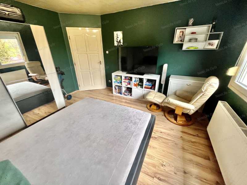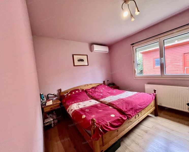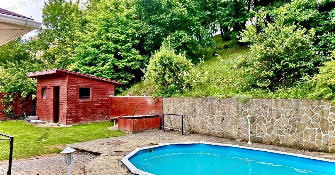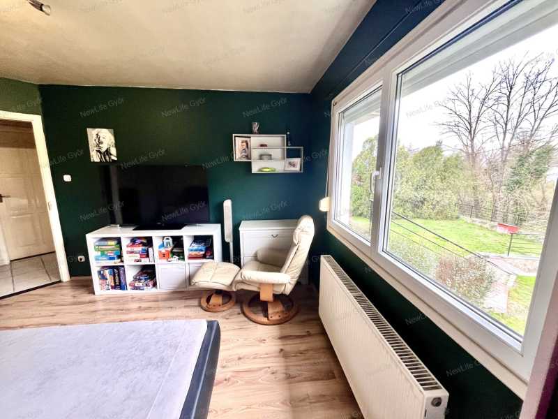 Csend, nyugalom, panoráma, a természet közelsége.... Igazi családi fészek, ahol minden nap olyan, mintha nyaralna. Ha szereti az erdő közelségét, ha szeretné egy igazán szép házban tölteni a szabadidejét, de mégis fontos, hogy egy nagyváros elérhető távolságban legyen,vagy fontos az autópálya közelsége, akkor ez a ház egy kitűnő választás lehet. Fedezze fel Győrújbarát természeti szépségeit egy igazán nívós, exklúzív környezetben! Megvételre kínálok Győrújbarát-hegyen egy igazi természetközeli környezetben egy 110 nm-es 4 szobás családi házat. A ház a 2000-es évek elején,könnyűszerkezetes, a nagymúltú észak-amerikai (kanadai) licenszet követő Syntec Syntrend technológia szerint épült. Az impozáns ingatlan a hegyoldalba lett kialakítva. A telek elején egy 6*9 nm-es, dupla garázs található. A garázs automata garázskapun keresztül közelíthető meg, ahol 2 autó kényelmesen elfér, míg másik két autó a garázs előtt is tud parkolni. Így mindösszesen 4 autó parkolására van lehetőség. A garázs zöldtetős, melyen 70cm magas föld, zöldterület lett elhelyezve. A házba és a kertbe egyaránt egy lépcsősoron jutunk fel. A lépcső tetején egy csodás kertbe jutunk, melyet egy szép kerti tó díszít, örökzöldekkel is parkosított, valamint csodás panoráma tárul elénk. A kis előteraszról jutunk a házba, ahol az előszobába lépve található a bélelt, kondenzációs kazán. A ház rezsije nagyon kedvező, ez mind a szigetelésnek, mind a napelemnek köszönhető. A napelem 5,28kW teljesítményű, de még 8 egységgel bővíthető. A napelem 3 éve került fel a tetőre, 20 éves garanciával. Minden panel külön egységként működik. A kazán a szobákban radiátoros hőleadókkal biztosítja a meleget, míg a hidegburkolatoknál padlófűtés van. A fűtés két körön megy, így külön-külön is be lehet kapcsolni a kétféle fűtéstípust. A fürdőszobában még a padlófűtés mellett törölközőszárítós radiátor is van. Egy hűtő-fűtő klíma is beépítésre került, valamint a nappaliban egy kémény is található, így akár kandalló,akár cserépkályha kialakítására is van lehetőség. Az ablakok mind műanyagok, redőnnyel vannak ellátva. Ennek köszönhetően a rezsi maximum 20.000 Ft havonta. A ház, az átgondolt tervezésnek köszönhetően nagyon jó felosztású. Az előszobától balra találhatóak a hálószobák, itt mindenkinek meglehet a privát tere. Míg jobbra az amerikai konyhás nappali fekszik,ahol az egész család kényelmesen együtt töltheti az idejét,itt lehet kijutni a hátsó kertrészbe, a teraszra, a medencéhez. A három hálószoba mérete nagyon ideális 12-14 nm-esek. Mellettük egy nagyméretű fürdő található, ahol sarokkád, mosdó,bidé, zuhany, és duplamosdó lett elhelyezve. A fürdszobai mosdó mellett, még egy vendégmosdó is található a bejárat mellett. Fontos, hogy egy nagyméretű, közel 6 nm-es gardrób és egy 3,5 nm-es spájz is megtalálható a házban, melyek a mindennapok kényelmét segíti. Az amerikai konyhás nappali több, mint 40nm-es nagyságú, ahol a konyha, étkező és a nappali kényelmes teret biztosít akár egy nagyobb család számára is. A konyhabútor 2 éve lett cserélve a mai modern ízlésvilágot tükrözi. Beépített mosogatógép,sütő, mikro, főzőlap,gránit mosogató és szagelszívó van a konyhabútorba elhelyezve. A nappaliból van lehetőség elérni a nagyméretű teraszt és a hátsó kertrészt, ahol egy kerti sütögető/kemence, egy nagyméretű, 1,2m mély medence,és egy 2,5*6 m-es nagyságú kerti ház található. A telek hátsó része fákkal, bokrokkal díszített. A ház megegyezés szerint költözhető. Ha szeretné megtekinteni, ne habozzon, keressen bizalommal!
