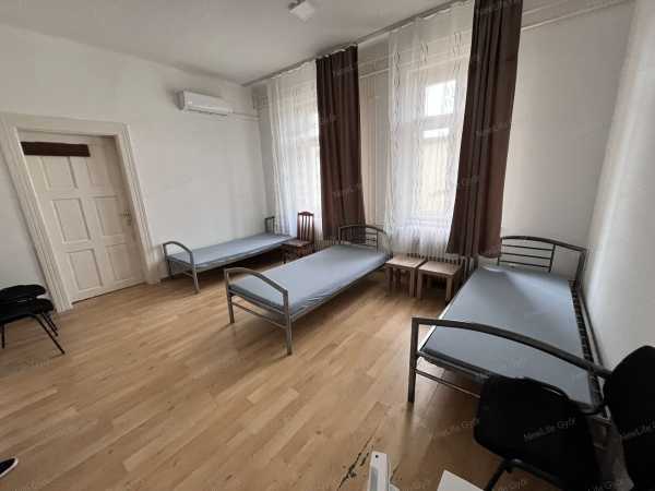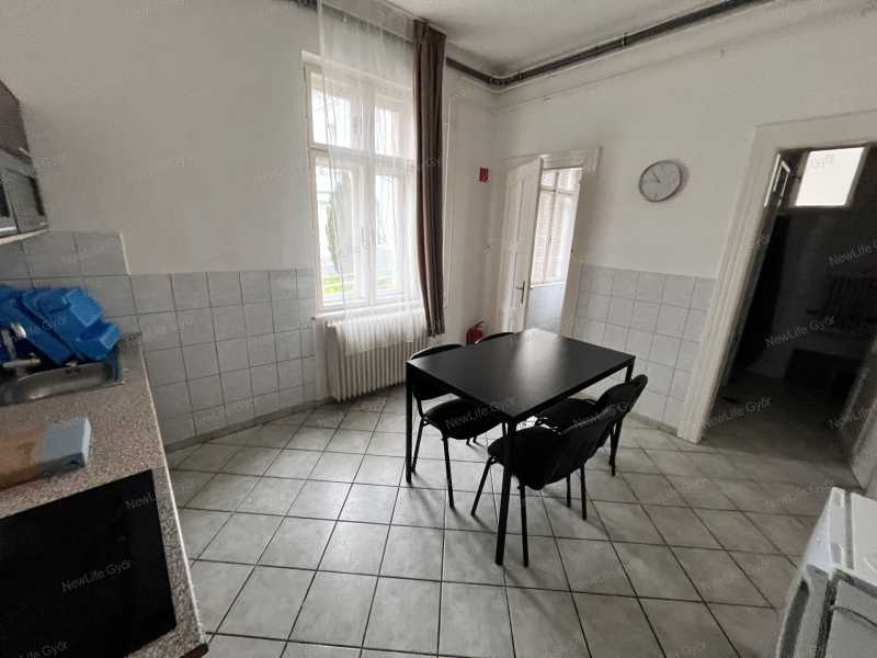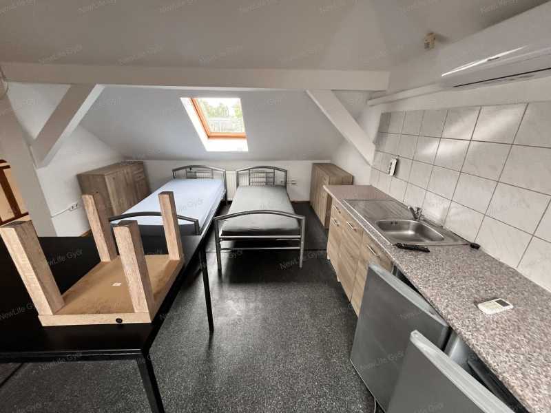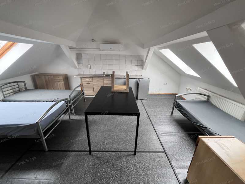 Város a városban! Egy biztonságos közeg Győr belvárosától, illetve az ipari parktól néhány perces távolságra. Egy külön kis városka alakult, mely teljesen körbezárt, biztonságos, sorompóval, porta-és biztonsági szolgálattal ellátott. Étterem, bolt, cégek és lakóépületek egyveleg alkotja. Itt kínálok megvételre egy 280nm-es telken épült 180nm-es családi házat, mely 3 szinten található. Összesen 8 szoba taláható melyet még háztartási helységek, fürdőszobák, mosdók egészítenek ki. A földszinten belépve egy szélfogóba érünk, ahonnan az egyik oldalon 2 szobát és egy jelenleg konyhaként funkcionáló helységet találunk, míg a másik részen 2 hálószobát és egy nagyméretű konyhát találunk. A mellékhelységek, mosókonyha, háztartási helység az alagsorban található. A tetőtér egy része beépítésre került, ahol két háló és egy kis konyharész lett kialakítva. A fűtés korábban távfűtéssel volt megoldva radiátoros hőleadókkal, míg jelenleg hűtúő-fűtő klímák biztosítják a meleget. Az ablakok kétrétegű fa/műanyag ablakok. A ház rendelkezik 2 állásos parkolóhellyel, illetve egy zárt udvarral, ahol akár szabadidős tevékenységet lehet folytatni, vagy további parkolóhelyeket kialakítani. A ház akár családi házként is tud funkcionálni, de kitűnő választás munkásszállóként való üzemeltetésre, ami jelen állapotában rögtön megvalósítható. Az ingatlan per- és tehermentes. Ha szeretné megtekinteni, keressen bizalommal!