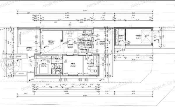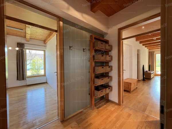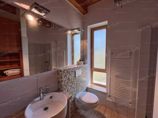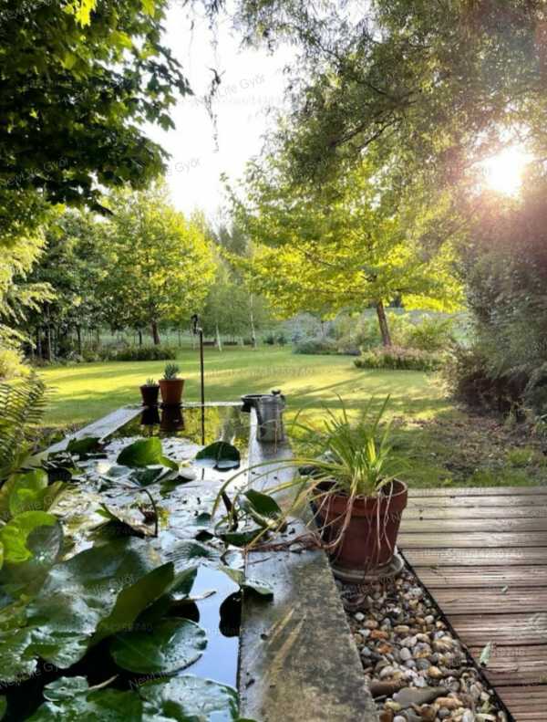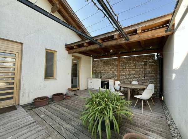 Igazi gyöngyszem Győrzámolyon! A Szigetköz egyik legkedveltebb településén eladó Benes Gábor építész által tervezett és épített, 3 hálószobás családi ház. A ház alapterülete 108 m2 + 27 m2 (garázs, tároló), míg a telek mérete 1109 m2. A házban 3 hálószoba+nappali, valamint 2 fürdőszoba -egy zuhanyzóval, egy mosdóval, plusz egy vendégmosdó található. A ház 2013-ban épült. A ház szerkezete: sávalapra épült, 30 cm kerámia falazat+15 cm külső hőszigetelés, 30 cm cellulóz padlás szigetelés, Baumit tetőcserép, látszó fagerendás pórfödém. A nyílászárók 3 rétegű hőszigetelt üvegezésű, Visi-Therm fa nyílászárók, Velux tetőtéri ablakok, fa beltéri ajtók. A fűtést Sauner Duval kombi gázkazán, padlófűtés + helyiségenként korszerű lapradiátorokkal, fürdőszobában törölközőszárító radiátorral. A nappaliban található cserépkályha igény esetén plusz meleget és kellemes hangulatot biztosít. A BELSŐ TÉR JELLEMZŐI: - előszoba (beépített szekrénnyel) - 3 hálószoba, nagy ablakokkal, részben beépített bútorokkal - 1 zuhanyzós fürdőszoba wc-vel (beépített szekrénnyel) - 1 különálló wc - háztartási helyiség - konyha (konyhabútorral, hibátlan gépekkel, indukciós főzőlappal) - étkező - nappali (fatüzelésű cserépkályhával) A ház előtt 3 beállós, térkövezett kocsibeálló + 1 garázs + zárt tároló kapott helyet. A kertben 2 ellentétes tájolású, részben fedett terasz (25 + 36 m2). Egy teljesen felszerelt konyha is kiépítésre került a teraszon. Valamint elkerített kutyaudvar,tüzifa és kuka tároló,dekor medence a hátsó teraszon,magaságyások a kert végében,szép, gondozott kert, nagy méretű fákkal, dús növényzettel, termő gyümölcsfákkal. Az ingatlan elrendezése és belső kialakítása az építész stílusában készült, amely magába foglalja a tágas, világos tereket és a természetes anyagok használatát. A ház körüli kert gondosan ápolt, tökéletes hely a pihenésre és kikapcsolódásra. Az ingatlan kiváló elhelyezkedésű csendes zsákutcában, közvetlenül a töltés mentén fekszik; 4 perc sétára található a buszmegálló, faluközpont 10 perc sétával elérhető. Autóval Győr belvárosa 15 perc alatt közelíthető meg. A közelben található bölcsőde, óvoda, általános iskola, lovarda, Coop, CBA, háztartási üzlet, fodrász, kozmetikus, háziorvosi rendelő, gyógyszertár, éttermek, fagyizók, Lipóti pékség, benzinkút és autómosó is.