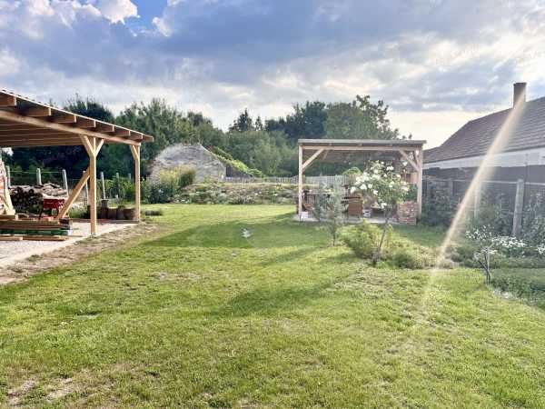 Nagycsaládosok figyelem! Kihagyhatatlan ajánlat! Megvételre kínálok egy 122 nm-es,6 szobás családi házat Babóton. A ház különlegessége,hogy két külön lakrészből áll, ahol több generáció kényelmesen elfér. Természetesen a két lakrész egybenyitható, így nagycsaládosok is könnyen elférnek. A ház a 70es években épült, de a felújításoknak köszönhetően egy modern, szép új lakóházzá vált. A ház téglaépítésű, mely 30as téglából épült, melyre 8 cm-es szigetelés került. A ház külső homlokzata már be lett vakolva, már csak a színezés hiányzik. A színezőanyag rendelkezésre áll, melyet az ár tartalmaz. A födém strukatoros, ami le lett betonozva, így akár a tetőtér is beépíthető. A ház ereszcsatornával ellátott. De akkor nézzük a ház belsejét! A két külön lakrész jelenleg két külön bejárati ajtón át köelíthető meg, mindkét ajtó a teraszról nyílik. A két lakrész egybenyitására is van lehetőség. Mindkét rész amerikai konyhás nappali+ 2 hálószobás+ egy-egy gardrób lett kialakítva.. Az egyik házban két fürdőszoba van, míg a másikban egy. A házban a külső nyílászárók mind ki lettek műanyagra cserélve. A ház összközműves. A meleget vegyestüzelésű kazán biztosítja radiátoros hőleadókkal. Kiegészítésként hűtő-fűtő klíma is rendelkezésre áll, illetve itt egy kályha is van az egyik nappali részben. A melegvizet két darab 120literes villanybojler biztosítja. Gázcsonk a ház előtt. A házban minden új, a konyhabútorok, a gépek új, illetve szinte alig használt állapotban vannak. Az egész felújítás nemrég fejeződött be. A ház melett több melléképület is helyet kapott, egy kazánház, mosókonyha, egy nagyméretű 18 nm-es garázs, ez jelenleg nyári konyhaként funkcionál. Illetve egy tároló.Innen lehet a padlásra is feljutni. A garázs mellett egy fedett parkoló is van. A kert éke a kerti pavilon, ahol kerti partik megvalósítása könnyűszerrel kivitelezhető, grillezés és a bográcsozás könnyen megvalósítható. A kert tele van évelőkkel, gyönyörű virágoskert dísziti. Néhány szó a településről: Babót falusi CSOK-os település. Óvoda, általános iskola, két bolt is rendelkezésre áll. Kapuvár pár perces távolságra van, de Csorna is könnyen elérhető. A ház gyorsan birtokbavehető, ha szeretné megtekinteni keressen bizalommal!