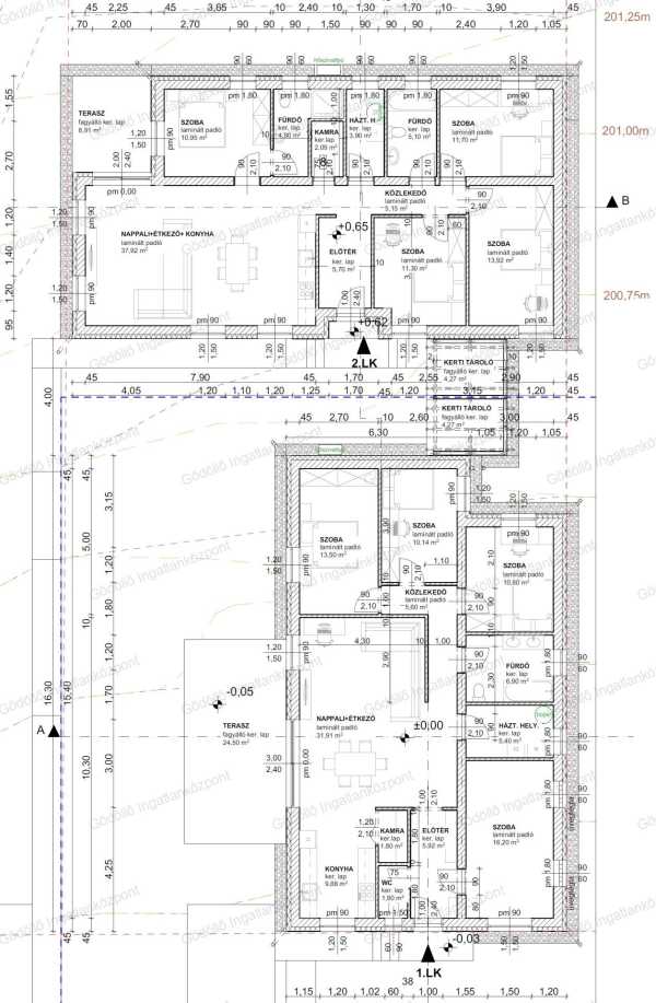 Gödöllő központhoz közeli kertvárosi részén, nappali + 4 szobás újépítésű ikerházfél referenciákkal rendelkező, megbízható építőtől eladó! Műszaki paraméterek: - 30-as Porotherm tégla falazat + 10cm grafit szigetelés, - beton cserépfedés, - födémen 20cm vastag kőzetgyapot, - 3 réteg üvegezésű, 5 légkamrás hőszigetelt nyílászárókkal, redőny előkészítéssel, - kondenzációs kazán vagy hőszivattyú (+3Mft), padlófűtéssel, - riasztó előkészítés, - hűtő-fűtő klíma 250.000.-Ft-ig, - bejárati ajtó: 250.000.-Ft, - beltéri ajtók: 70.000.-Ft/db, - kerámia burkolatok 5.500.-Ft/nm, - parketta 4.500.-Ft/nm, - mosdó 20.000.-Ft/db, - WC 30.000.-Ft/db, - csaptelepek 15.000.-Ft/db, - kád 50.000.-Ft, - zuhanyfolyóka 25.000.-Ft, - helyiségenként 1db kiállás + kiállások 25.000.-Ft/db, - helyiségenként 1db kapcsoló + kapcsolók 35.000.-Ft/db. Elosztás: - előtér, nappali-konyha-étkező, kamra, közlekedő, 4 szoba, fürdő, háztartási helyiség + 8,91nm terasz + 4,27nm kerti tároló Telek: - 500nm-es telken helyezkedik el, parkoláshoz kocsibeálló kerül kialakításra, - kaputól a bejárati ajtóig 1m széles, térkövezett járda, - Kerítés díszkővel, fa vagy acél közökkel. Környék: - Elhelyezkedése kiváló, iskola, óvoda, helyi és távolsági buszmegálló a közelben. Az ingatlant megbízható kivitelező építi! Burkolatok, belső ajtók a vevői igényei szerint még szabadon választhatók! Kérésre teljes műszaki tartalmat, alaprajzot szívesen küldünk! Irányár: 129.000.000.-Ft Hivatkozási szám: 2518262. Megtekinthető telefonos időpont egyeztetés alapján: Sápi Balázs +36 20 772-2429 sapibalazs@godolloi.hu GÖDÖLLŐ INGATLANKÖZPONT - www.godolloi.hu: Gödöllő és környéke legnagyobb ingatlan választéka /Gödöllő, Szada, Veresegyház, Kistarcsa, Kerepes, Erdőkertes, Fót, Dunakeszi/ eladó-kiadó családi ház, telek, lakás! Ingatlan építés és felújítás!
