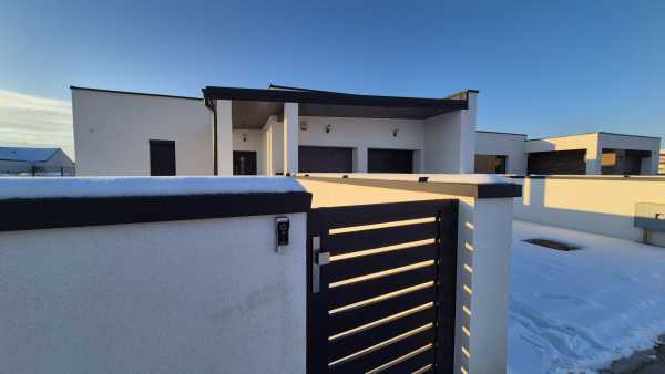 Ez az abszolút kivételes megjelenésű, exkluzív családi ház lehet most az öné, szó szerint kulcsrakészen! 106,69 nm lakótér-nappali + 3 szoba, + 33,3 nm-es fűtött, dupla garázs, terasz + 21,93 nm. Telek: 654 nm. A lenyűgöző nappali-konyha-étkező egy légtérben, extra 4 méteres belmagassággal, két oldali természetes bevilágítással kerámia burkolattal és közvetlen, (21,93 nm) teraszkapcsolattal lett kialakítva – a fény és tér élménye garantált. A nappaliban 6 db elektromos redőny, valamint egy 5,4 kW-os klíma kerül beépítésre Modern gépesített konyhabútor Háztartási helyiség + kamra a praktikus mindennapokért 3 kényelmes hálószoba – laminált padlóval, kézi redőnnyel, gardróbhelyiséggel Fürdőszoba (kád, zuhany, Wc) + külön WC – természetes szellőzéssel és bevilágítással Fűtés: padlófűtés a nappaliban, radiátoros hőleadás a hálókban – gázkazán és hőtárolós bojler biztosítja az energiatakarékos működést A nyílászárók Gealan 3 rétegű üvegezésű, minőségi ablakok, kívül antracit, belül fehér színben. A ház falazata 30-as Porotherm, ragasztott téglával készült. Külső szigetelés: 15 cm 3×16 kW áramellátás, dupla villanyóra – ideális, ha napelemes rendszerben gondolkodik A tetőfedése: korcolt bádog - félig lapostető (cca.5%-os) 2 GK számára, garázs 2 külön Hörmann kapuval ellátva. Udvaron térköves GK beálló, járda a kerthez Kész kerítés – elől fehér betonból, szürke kapuval. Tájolás: Kelet–Nyugat Elhelyezkedés: Vámosszabadi új építésű részén, a közkedvelt Szitásdomb II. lakónegyedben, csendes, családbarát környezetben. A letisztult, modern építészeti megoldások és a prémium anyaghasználat tökéletes otthont biztosítanak azok számára, akik nem szeretnének kompromisszumot kötni. A részletekért hívjon bizalommal – tekintsük meg együtt élőben, és győződjön meg róla személyesen,ígérem nem fog csalódni! Tel.: +36 20 481 3369 Hartmann-né Viki