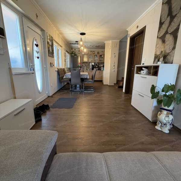Kiliti egyik legjobb részén kínáljuk ezt a minden igényt kielégítő, teljeskörűen felújított családi otthont, ahol a modern technológia és a kényelmes élettér tökéletes harmóniában találkozik. A 138 m²-es, kétszintes családi ház egy 600 m²-es, parkosított telken helyezkedik el. A kert jobb oldalán külön konyhakert és hangulatos grillezőrész kapott helyet – ideális családi és baráti összejövetelekhez. A házból kilépve egy teljesen felszerelt nyári konyha várja az új tulajdonost, amely tavasztól őszig a mindennapok kedvenc közösségi tere lehet. A földszinten egy gépesített konyha-étkező fogad, amelyhez tágas, világos nappali kapcsolódik. Innen nyílik a fürdőszoba és a WC. Az emeleten kényelmes folyosóról érhető el két hálószoba, egy fürdőszoba WC-vel, egy társalgó és egy külön gardrób, így a család minden tagja számára biztosított a saját élettér. Az ingatlan 2022-ben teljes körű felújításon esett át: – víz-, villany- és szennyvízhálózat cseréje – új fürdőszobák – modern nyílászárók és beltéri ajtók – palatető cseréje cserepes lemezre – konvektoros fűtés korszerű elektromos rendszerre váltása A ház energetikailag is kiemelkedő: 8 kW-os napelemrendszerrel és 15 kW-os inverterrel felszerelt, amely fedezi a család éves energiafogyasztását. A fűtés inverteres klímával és padlófűtéssel is megoldott, míg a nyári komfortot split klíma biztosítja. A kétállásos garázs kényelmes parkolást nyújt, de az ingatlan igazi különlegessége a 25 m²-es, külön bejáratú üzlethelyiség, amely jelenleg is üzemel, hosszú távú bérlővel – így az új tulajdonos számára azonnali, stabil bevételi forrást jelent. A háztól pár lépésre található a helyi buszmegálló, gyalogos távolságra iskola, bolt, pékség és cukrászda – minden, ami a kényelmes mindennapokhoz szükséges. Ez az ingatlan ideális választás azok számára, akik egy modern, energiatakarékos, extra bevételi lehetőséggel rendelkező, azonnal költözhető otthont keresnek Kiliti szívében.