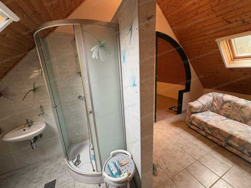Az Ingatlan Presszó eladásra kínál nyaralót Ábrahámhegyen. Az Ingatlan Presszó által kínált ábrahámhegyi nyaraló jellemzői: - hétvégi ház (tulajdoni lapon: gazdasági épület) nettó 72 m2 - telekrész: 1263 m2 drót kerítéssel van körbe kerítve/, külön bejáratú a másik telekrésztől (mivel osztatlan közös) - vezetékes vízzel, és villannyal (aluminium, 2 x 16 Ah) ellátott - építési anyaga kő és tégla - tető fedése pala - szennyvíz derítőbe gyüjtődik - (központi) fűtése vízteres cserépkályháról megoldott - melegvizet villany bojler szolgáltatja éjszakai áramról (1 x 16 Ah) - nyaraló mind kettő szintjén van zuhanyzós fürdőszoba - földszint: előtér, konyha, spájz, szoba (vagy étkező), zuhanyzós fürdő szoba wc-vel - tetőtér (77cm-es térdfallal épített): szoba, zuhanyzós fürdő szoba wc-vel - osztatlan közös a terület, de használati megosztással megosztható külön bejáratúra is tehető a telek, valamint a kettő rajta lévő ház elszeparálható, mert egymástól kellő távolságban van - csendes mellék utcában található, erdő alatt - balatoni részpanorámával - művelési ágban lévő külterületi ingatlan, ezért kifüggesztés köteles - az ingatlan átlagos állapotú, kitakarítás, és festés után akár költözhető, de fel is újíthatja saját izlése szerint - parkolás jelenleg az utcán, de némi átalakítással akár meg lehet oldani a beparkolást is a telekre Amennyiben az Ingatlan Presszó által kínált nyaraló, vagy bármely kínálatunkban található ingatlan felkeltette érdeklődését, hívjon bizalommal a megadott telefonszámon. Irodánk szakember ajánlásai igény esetén: ügyvéd, energetikai tanúsítvány, hitelügyintézés, értékbecslés, statikus, földmérő, építészmérnök, belsőépítész, villanyszerelő, víz-, gáz-, központi fűtés szerelő, kőműves, burkoló... Továbbiakban keresek eladó vagy kiadó családi házat-, lakást-, nyaralót-, gazdasági épületet-, raktárt-, csarnokot,- telephelyet,- építési telket-, zártkertet-, külterületet-, szántót-, legelőt-, erdőt, akár még tulajdoni hányadot is ügyfeleim részére, Veszprém vármegyében, Sümeg- és Tapolca környékén, valamint Balaton-felvidéken, Káli-medencében, Művészetek Völgyében, Balatonederics-Zánka között. Köszönettel, Bódis Péter ingatlanértékesítő Ingatlan Presszó Térjen be hozzánk egy ingatlanra!