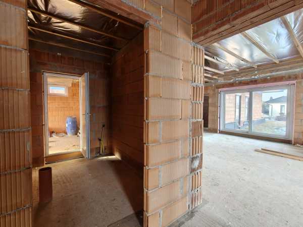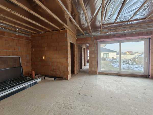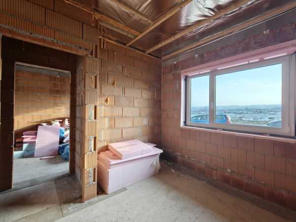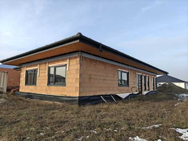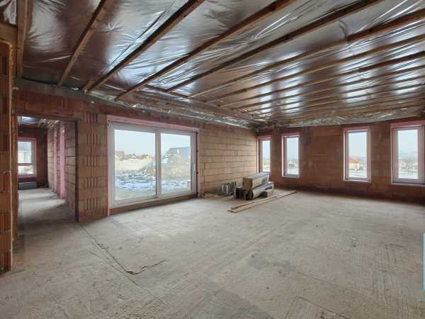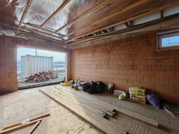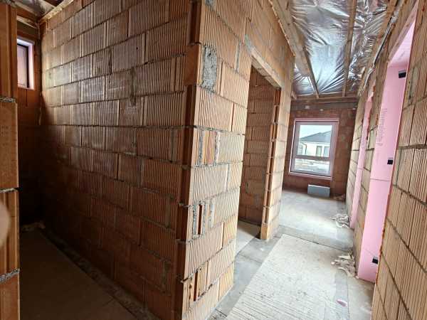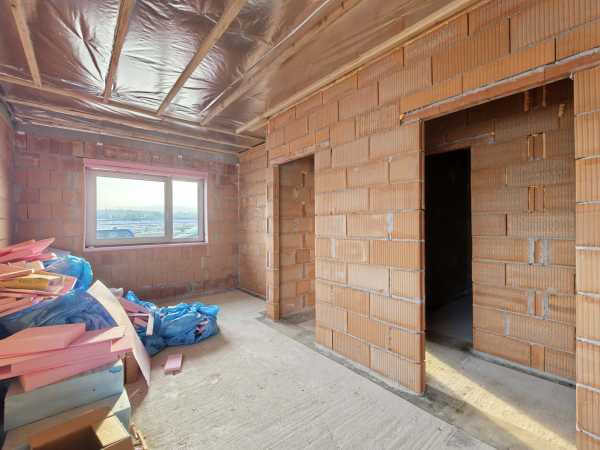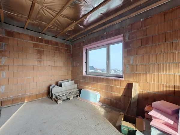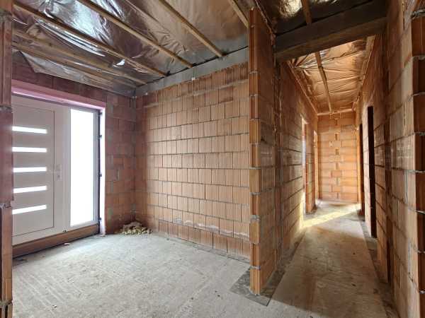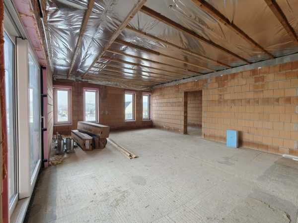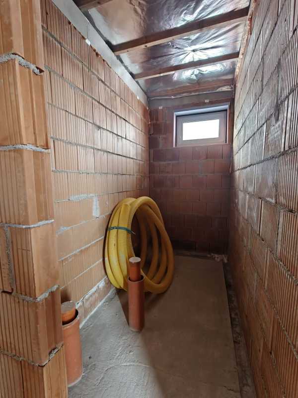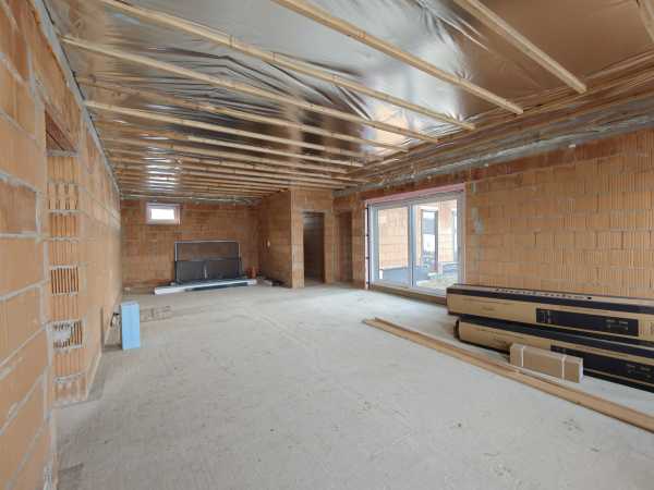 Nyergesújfalu új parcellázású részén, kertvárosias környezetben, eladó egy – jelenleg még építés alatt álló – új építésű családi ház, a hozzá tartozó 803 m2 területű telekkel. A ház egy szintes, mindösszesen 180 m2 alapterületű, melynek szerves részét képezi a házzal egybeépített igény esetén fűthető garázs. A 150 nm-es lakótér rendkívül jó elosztású. A bejárat a ház közepén található, innen balra, az utca irányában alakították ki a "gyerek részleget", ahol helyet kapott három egymástól külön nyíló szoba, és egy fürdőszoba. Az előtértől jobbra, a hátsó kert felé kapott helyet a hatalmas, tágas nappali, konyha, majd a folyosóról megközelíthető szülői háló, fürdőszoba, illetve egy speiz. Az előtér a garázzsal is összeköttetésben van. Az ingatlan befejezetlen, jelen pillanatig az alábbi munkálatok készültek el. -20cm hőszigetelés a lemez alap alatt, -30 cm- es Wienerberger X therm falazat, -szeglemezes tetőszerkezet padlàskialakítàssal. -terràn Zenit Elegant héjazat. -Schüco Living 82 MD nyílàszàrók, -hőszigetelt elektromos redőnyők, szúnyoghàlók (nincsenek felszerelve). -Ventalp Inverter hővisszanyerős szellőztetőrendszer szerelvényei (nincs beépítve). -A hàz szerkezeti elemei teljes hőhídmentes kivitelezést tesznek lehetővé. -Làbazat drénezve. Az ingatlan jelen állapotában eladó, a további munkafolyamatokat a leendő tulajdonos saját elképzelései alapján végezheti el. Közművek közül vezetékes víz-, villany-, valamint csatornahálózat is megtalálható. A környéken csak új építésű családi házak találhatóak, a közelben egy supermarket építését tervezik. Az ingatlan per-, teher-, és igénymentes, a vételár kiegyenlítését követően azonnal birtokba vehető. Előzetes időpont egyeztetés után a hét bármely napján megtekinthető. Amennyiben hirdetésem felkeltette érdeklődését, vagy bővebb információra van szüksége, hívjon a megadott számon telefonon vagy WhatsAppon! Irodánk teljes körű jogi háttérrel, bankfüggetlen hitelügyintézéssel áll ügyfelei rendelkezésére.