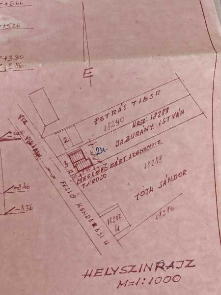 Megvételre kínálok egy három szintes lakóházat kettő darab boltíves borospincével. Az ingatlan Esztergom Kenderes városrészében, csendes, nyugodt környéken található. Az utcára zártsorú beépítés jellemző, parkolni saját garázsban lehetséges. A tulajdoni lapon lakóház, udvarként szerepel. Az épület hasznos alapterülete 47 nm szintenként. Az alsó szint közvetlenül az utcára nyílik, egy előtérre, egy fürdőszobára egy kazánházra és egy fatárolóra tagolódik. Utóbbi helyiségből nyílik a boltíves borospince. Ezen a szinten egy másik bejáratról közelíthető meg a garázs, mely szintén egy borospicében végződik. A három szint között belső átjárás nincsen, a lakótér külső lépcsőfeljárón közelíthető meg, de a 30%-os beépítési szabályzatnak köszönhetően az ingatlan hátrafelé bővíthető, lehetőséget biztosítva egy lépcsőház kialakításának is. Az első lakószinten helyet kapott egy konyha, egy fürdőszoba, egy étkező-nappali, és egy külön hálószoba. Ezen a szinten a nyílászárókat műanyagra cserélték, redőnnyel, szúnyoghálóval szerelték fel. A szobákat padlószőnyeggel, és linóleummal, a többi helyiséget járólappal burkolták. Ugyanezen a szinten egy külön bejáratról vezet egy csigalépcső a legfelső szintre. Itt egy kamra is található. A legfelső szint egy nappalira, két hálószobára és egy wc-kézmosóra tagolódik. A szobákat itt is padlószőnyeggel, a nappalit linóleummal burkolták, a nyílászárók még az eredeti fa ablakok. Az erkély a hátsó kertre néz. Az otthon melegéről gázkazán gondoskodik, radiátoros hőleadással, ezen kívül egy kandalló is rendelkezésre áll. A meleg vizet villanybojler szolgáltatja. A lakóház téglából épült, a szintek között betonfödém van, a tető héjalása pala. A lakószint közvetlenül a hátsó kertbe vezet. A 638 nm-es telek teraszos kialakításó, szépen gondozott, számos termő gyümölcsfa, és megannyi telepített csemegeszőlő tarkítja. A kert legfelső harmada egybefüggő sík terület, kiválóan alkalmas egy pihenőkert kialakítására, ahol egy hatalmas diófa árnyékában pihenhetünk meg. Lokációját tekintve remek, óvoda, iskola, bevásárlóközpont, barkácsáruházak, vasútállomás, buszmegálló mind a közelben találhatóak. Az ingatlan per-, teher-, és igénymentes, a vételár kiegyenlítését követően azonnal birtokba vehető, előzetes időpont egyeztetés után a hét bármely napján megtekinthető. Amennyiben hirdetésem felkeltette érdeklődését, vagy bővebb információra van szüksége, hívjon a megadott számon telefonon vagy WhatsAppon. Irodánk teljes körű hitelügyintézéssel, jogi háttérrel áll ügyfelei rendelkezésére.