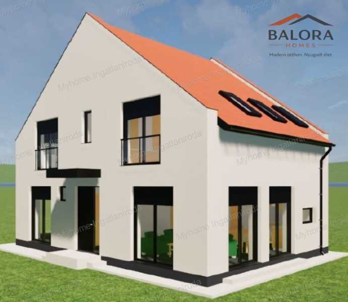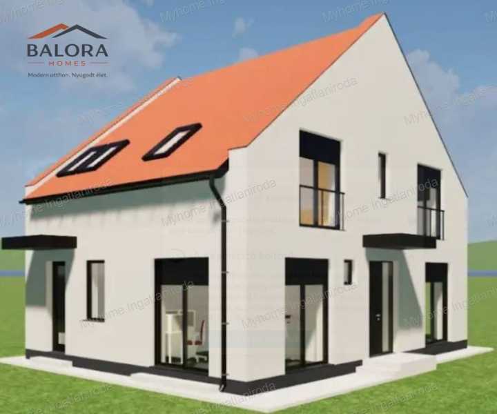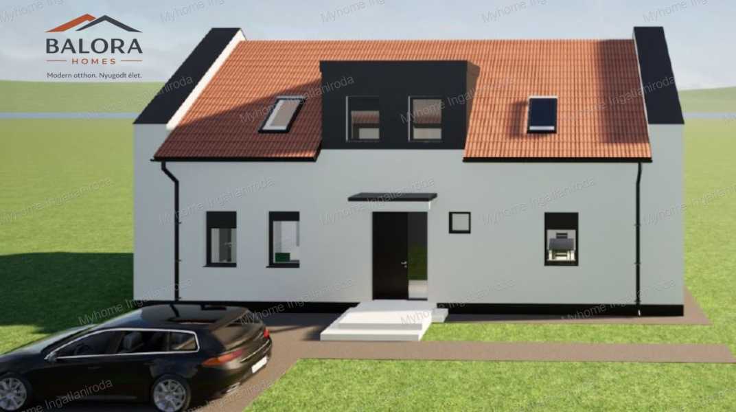Keszthely keleti, folyamatosan fejlődő városrészében, a Hévíz irányába vezető tengely mentén épül a Balora Homes projekt második lakóépülete. A fejlesztés mindössze két különálló lakóépületből áll, így a tulajdonosok egy privát, családi házas környezetben élhetnek. Az ingatlan nappali + 4 szobás kialakítású, két szinten 118,62 m² hasznos alapterülettel, saját kerttel és két autó parkolási lehetőségével. Helyiségek elosztása Földszint – 62,77 m² szélfogó, külön WC, előtér, tároló, kamra, konyha, 18 m²-es nappali, dolgozószoba, valamint egy tágas háztartási helyiség. Tetőtér – 55,85 m² lépcső, közlekedő, fürdőszoba, valamint négy külön nyíló szoba (10,26 m², 10,26 m², 10,26 m² és 10,26 m²). Az emeleti szint több külön nyíló szobája ideális elrendezést biztosít nagyobb családok számára, vagy akár dolgozószoba és vendégszoba kialakítására is. Főbb műszaki jellemzők • Fűtési rendszer: hőszivattyú • Földszint: komfortos padlófűtés • Emelet: fan-coil hűtés–fűtés rendszer • Hűtés: fan-coil rendszerrel biztosított (klíma funkció) • Energiatakarékos, modern gépészet • háromrétegű hőszigetelt nyílászárók • elektromos alumínium redőnyök • 15 cm külső hőszigetelés • napelem rendszer előkészítés (alapbecsövezés) Kültéri adottságok • saját kertkapcsolat • térkövezett autóbeálló • két autó parkolási lehetősége • füvesített kert • modern utcafronti kerítés Személyre szabható otthon A kivitelezés jelenlegi szakaszában még lehetőség van burkolatok és szaniterek kiválasztására, így az új tulajdonos saját ízlésére alakíthatja otthonát. Elhelyezkedés A projekt lokációja különösen kedvező: • Balaton közelsége • Hévíz gyors elérhetősége • Keszthely városi infrastruktúrája • nyugodt, családi házas környezet Várható átadás: 2027 tavasza A vásárlás során teljes körű támogatást biztosítunk: pénzügyi tanácsadás, hitelügyintézés és lakberendezési szakértő bevonása igény szerint. Ha szeretné az elsők között megismerni ennek az új otthonnak minden részletét, keressen bizalommal. Balora Homes – Nyugodt otthon. Nyugodt élet. Myhome – Az ingatlanban otthon