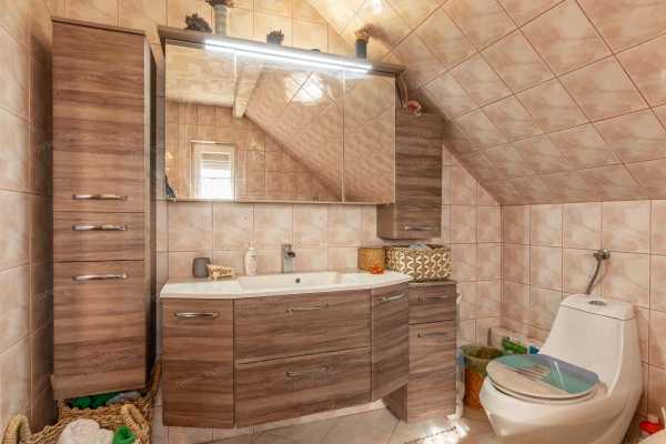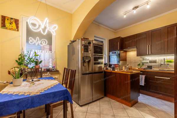 Rákoscsaba-Újtelep csendes, rendezett utcájában eladó egy kiváló adottságokkal rendelkező, folyamatosan karbantartott, téglaépítésű és szigetelt családi ház. Az ingatlan első felújítása és bővítése 1998-ban történt, azóta pedig több alkalommal korszerűsítették, legutóbb 10 éve, amikor a kazánt és a nyílászárókat is cserélték, valamint elkészült a szauna és a gyönyörű kandalló is. A ház elrendezése kimagaslóan praktikus, akár két generáció számára is kényelmes, jól elkülöníthető életteret biztosít. A földszinten amerikai konyhás nappali található, amelyet egy impozáns kandalló tesz igazán hangulatossá. Innen nyílik a teljesen zárt télikert, ahol a szauna kapott helyet, valamint a teraszra is innen jutunk ki. Ezen a szinten egy nagyméretű dolgozószoba, egy frissen felújított fürdőszoba WC-vel, közlekedő, mosókonyha és kamra is rendelkezésre áll. A dolgozószobából vezet a lépcső az emeletre, ahol második nappali, két hálószoba, valamint egy tágas, sarokkádas fürdőszoba található. A nappaliból és az egyik hálóból is közvetlen kijárat nyílik az erkélyre. Az épület korszerűsítése során hőszigetelt műanyag ablakok kerültek beépítésre redőnyökkel, a homlokzat pedig 10 cm-es szigetelést kapott. A tető szigetelt, cserépfedéssel. A fűtést modern gázkazán biztosítja lapradiátorokkal, emellett fatüzelésű kandalló és hűtő-fűtő klíma is rendelkezésre áll, így az ingatlan fenntartási költségei kifejezetten kedvezőek. A gondozott kertben hatalmas fedett terasz, valamint szalonnasütő-bográcsozó teszi lehetővé a családi és baráti összejöveteleket. A garázs egy autó számára biztosít helyet, a beállón további két gépkocsi parkolhat. A közlekedés kiváló: vonattal és busszal is könnyedén elérhető a főváros. A környék igazi kertvárosi hangulatot áraszt, biztonságos, jó szomszédsággal és jól működő infrastruktúrával. Bankfüggetlen hitelügyintézőnk segít a legkedvezőbb konstrukció kiválasztásában. Várom hívását!