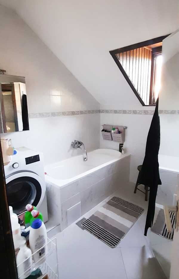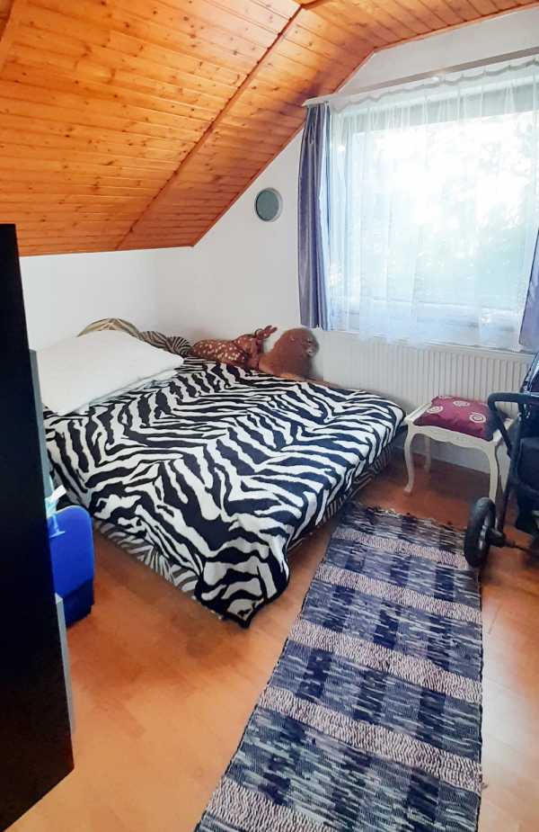Körültekintő Ingatlan 26LL9042 Megtekintés és bővebb információ: Elisher Nándor +36202449544 Leányfalu domboldalában családi ház felső lakása eladó. Megtekintés és bővebb információ: Elisher Nándor +36202449544 Város:Leányfalu Ingatlan jellege:Ház Ház típusa:Házrész Nappalik száma:1 Egyéb szobák száma:2 Pince, tároló:nincs Többgenerációs:Nem Hasznos lakóterület:126 m2 Telek területe:0 m2 Állapot:Jó Közmű:Víz, Villany, Gáz, Csatorna Parkolási lehetőség:Telken belül Fűtés:Egyedi cirkó Leányfalu domboldalában, a központhoz közel, nagyon csendes mellékutcában két szintes, két lakásos családi ház emeleti, tetőtéri lakása eladó. A lakás 126 nm-es, jó állapotú, nappali + 2 hálószobás. További egy háló kialakítható. A ház 1990-ben épült, a lakást 2010-ben felújították, így nagyobb befektetést már nem igényel. Fűtése fa tüzelésű kandallóval megoldott, igény esetén gázfűtés kialakítható. A lakáshoz kertrész nem tartozik, parkolás az utcán megoldott. A ház alsó szintje is eladó, a teljes ház ára 129,0 MFt.