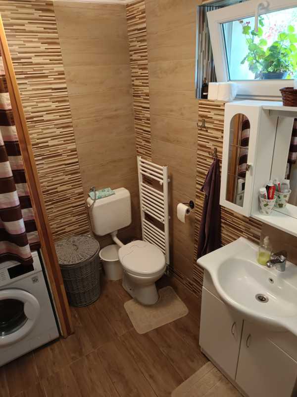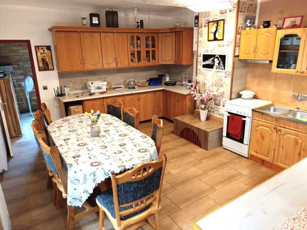 Családbarát otthon eladó Csolnok csendes településrészén – tágas terek, biztonságos környezet, teljes felújítás Ha olyan otthont keresel családod számára, ahol nyugalom, természetközelség és biztonságos közösség vár, ez az ingatlan ideális választás lehet! Csolnok egyik legkedveltebb, zöld részén, két utcából is megközelíthető zsákutcában, forgalomtól védett helyen kínálok eladásra egy gondosan karbantartott, felújított családi házat. Ez az a hely, ahol a gyerekek még nyugodtan játszhatnak az utcán, és ahol a természet közelsége igazi otthont adhat a mindennapokhoz – anélkül, hogy lemondanál a kényelemről: bolt, posta, orvos, óvoda, iskola mind pár perces sétával elérhető. Főbb jellemzők: Hasznos lakótér: kb. 90 m² + kb. 60 m² különálló hátsó épület, fedett terasz (15 m²), garázs (20 m²) Telekméret: két helyrajzi számon összesen kb. 395 m² (összenyitott telkek – további ráépítési lehetőséggel) Stabil szerkezet: a ház első fele vályog, hátsó része téglaépítés, beton alap, száraz, penészmentes ház Hőszigetelés: 8 cm dryvit + nemesvakolat Modernizálás: felújított víz-, villany- és csatornahálózat, új burkolatok, festés, világítás Energiatakarékosság: hűtő-fűtő klíma, 6 kW elektromos radiátoros fűtés + vegyes tüzelésű kazán Háromrétegű, magas minőségű redőnyös és szúnyoghálós nyílászárók Csendes, zöld környezet – mégis minden a közelben Belső elrendezés (főépület): Földszint: 2 hálószoba, étkezős konyha, tágas előszoba, fürdőszoba (kád+WC egyben), gardrób (plusz szoba is kialakítható) Tetőtér: egy különálló, világos hálószoba + tárolásra használt, belső lépcsőn megközelíthető padlástér (beépíthető) Melléképület (kb. 60 m²): Ideális külön lakrészként nagyobb gyerekeknek, idősebb szülőknek, vendégeknek, vagy akár otthoni vállalkozás céljára. 2 szigetelt, burkolt belső helyiség WC rendelkezésre áll, fürdő kialakítható Tágas, világos folyosó, amiből a 2 belső pincéből kialakított helyiség nyílik Központi fűtés, radiátorokkal Kert, telek, egyéb előnyök: Önálló garázs Fedett terasz UV-álló borítással Gondozott kert, veteményes, pihenőrész Két utcafronti bejárat, teljesen körbekerített udvar További beépítési lehetőség a másik helyrajzi számú telken Támfalas hátsó kertrész, fedett pihenő rendelkezésre áll – játszótér vagy kerti sütögető is kialakítható A vételár részét képezi a házzal szemben lévő másik két kis telek is, összesen 160 nm méretben, a patak part közelében, ez gazdálkodásra vagy akár garázsnak, kocsibelálló létesítésére is alkalmas. Finanszírozás: Az ingatlanra CSOK, CSOK Plusz, valamint otthonfelújítási támogatás is igénybe vehető – ideális választás családalapításhoz vagy többgyermekesek számára. Az ingatlan per és tehermentes, átlagos kiköltözési idő után birtokba vehető. A beépített konyhabútor a vételár részét képezi, a többi bútor és berendezés megegyezés szerint szintén az ingatlanban maradhat. Ez a ház nem csak egy ingatlan, hanem egy valódi otthon lehet a családod számára – Csolnok egyik legbarátságosabb részén. Érdemes megnézni személyesen is, mert az otthon melegét és a környezet nyugalmát és szépségét élőben lehet igazán megtapasztalni. Megtekinthető a hét bármely napján, előre egyeztetett időpontban.