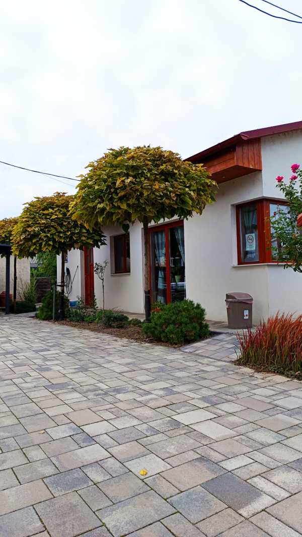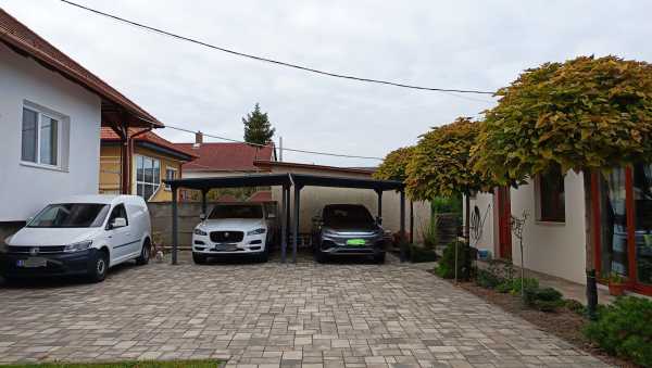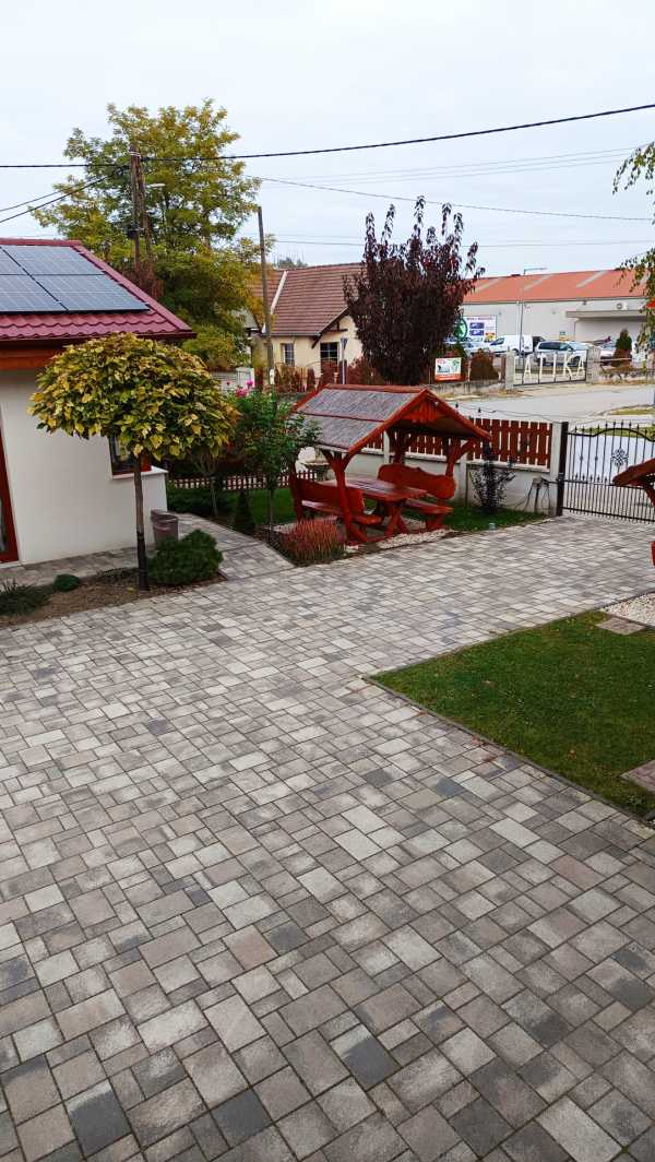 Tát egyik legkedveltebb részén, a Tátika tér közvetlen közelében eladó ez a ritkaságszámba menő, két különálló lakóépületből álló ingatlan, amely tökéletes választás többgenerációs családoknak vagy azoknak, akik egy tágas, igényesen felújított otthont keresnek, vagy otthoni vállalkozást működtetnek és ehhez egy önálló ingatlan lenne a legjobb választás. Az udvar kettéosztható, így saját telekrészekként lehet hasznosítani. A nagyobbik ház teljesen felújított, a kisebbik, ami jelenleg cukrászdaként üzemel 2022-ben épült. A nagyobbik ház 230 m²-es tégla épület, ebből 150 m² teljesen megújult belső térrel és egy 80 m²-es, még felújítandó szuterénrésszel rendelkezik. Jelenleg üzleti célra hasznosítják, de minden rendelkezésre áll benne lakáscélra is. Jelenlegi helyiségei: ügyfélfogadó (=előszoba), konyha, 2 kisebb és egy nagy méretű terem (=szoba), tágas folyosó, közös előtérrel dupla WC (itt könnyedén tusoló alakítható ki). A szuterénben egy cukrászműhelyként használt rész már felújított, a többi jelenleg is alkalmas tárolásra. A főingatlan 2017 és 2020 között szinte teljes újjászületésen esett át: új tetőszerkezet cserépfedéssel, korszerű nyílászárók, megújult gépészet és burkolatok, valamint 8 cm vastag külső hőszigetelés, kamerarendszer. A fűtésről kondenzációs gázkazán, radiátorok és két modern, GREE hűtő-fűtő klíma gondoskodik, az elektromos hálózat 3 x 32 A ipari áram, valamint 12 kW-os napelemrendszer, amely szaldós elszámolású és a 2 ingatlan együttes áramellátását biztosítja. Az udvarban található második, 2022-ben épült ház (70 m²) jelenleg egy működő cukrászda, de könnyedén átalakítható egy második, önálló lakóegységgé – így ideális megoldás lehet két generáció összeköltözésére vagy akár vendégháznak is. A második ház főbb jellemzői: A gondos tervezés és minőségi kivitelezés már az első pillanatban érezhető. Az épület kerámiabeton szerkezetű, 18 cm vastag kőzetgyapot szigeteléssel, míg a padlástérben 30 cm-es födémszigetelés gondoskodik a kedvező hőérzetről és az alacsony rezsiről. A háromrétegű üvegezésű, fa nyílászárók nemcsak esztétikusak, hanem kiemelkedően jó hő- és hangszigetelést is biztosítanak. Belül igényes burkolatok és minőségi szaniterek kerültek beépítésre, így a ház minden részlete a kényelmet és a tartósságot szolgálja. Az ingatlan közös elektromos hálózaton működik a főépülettel, a vezetékes vízellátás viszont külön mérőóráról történik. A fűtésről elektromos fali panelek és hűtő-fűtő klíma gondoskodik – a kiváló hőszigetelésnek köszönhetően a panelekre a téli hónapokban is csak minimálisan van szükség. Elosztása: egy nagy vendégfogadó tér, önálló helyiségben konyha, egy további ajtóval elzárt helyiség, ami szobaként hasznosítható, innen nyílik egy zuhanyzós fürdőszoba, külön férfi és női WC került kialakításra közös előtérrel. A 817 m²-es, parkosított kert igazi ékszerdoboz: három hangulatos nádfedeles kiülő, 2 állásos fedett kocsibeálló, több autó számára alkalmas térkövezett parkolófelület, gondosan ápolt zöldfelületek, térkövezett járda és elektromos kapu biztosítják a kényelmet. Az udvaron elektromos autóknak töltőállomás került kialakításra. A mindennapokhoz minden karnyújtásnyira van: bolt, piac, buszmegálló, minden a közelben. Irányár: 167 millió Ft Egy különleges dupla otthon, ahol a család minden tagja megtalálhatja a helyét!