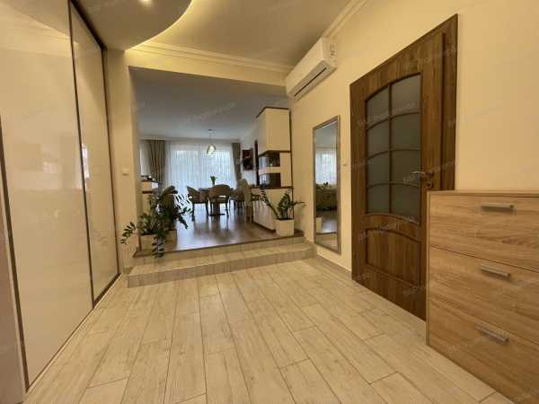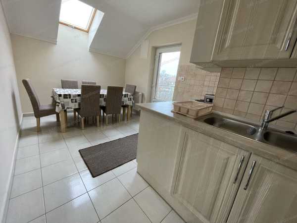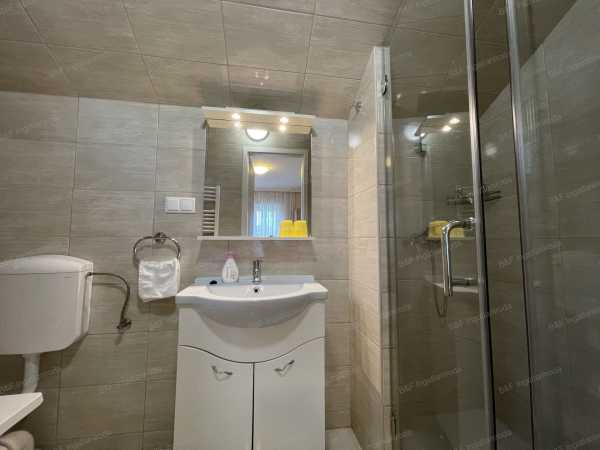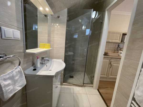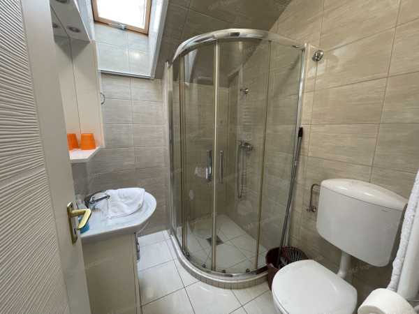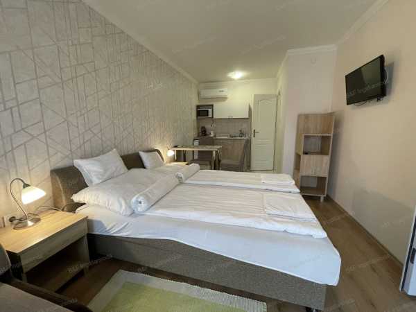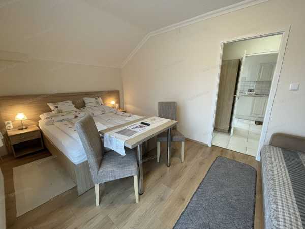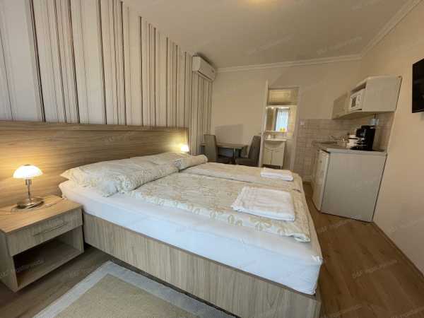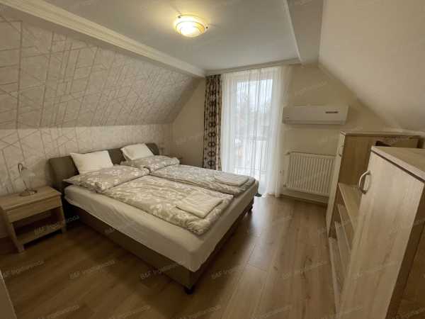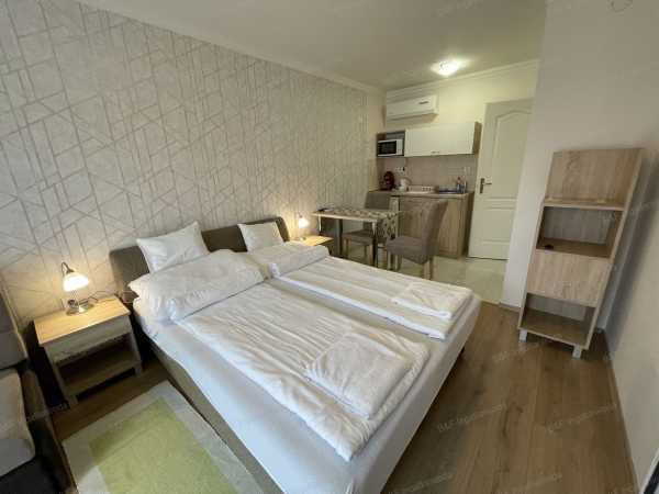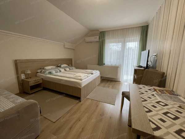 Azonosító: 1806 Hajdúszoboszlón a gyógyfürdő és a Mátyás király sétány közvetlen közelében kínálok eladásra egy 9 apartmanból, egy 2 szobás, nagy nappalis lakásból és egy szuterénből álló, rövid időn belül költözhető, azonnal kiadható állapotú apartmanházat. Az ingatlan 2016-18-ban épült téglából. A belső terek kialakításának köszönhetően mind a szállóvendégek, mind az ott lakó tulajdonosok igazán otthonosan érezhetik magukat. A 761 nm-es telken 2 épület található. Az első épületben található egy 92 nm-es, 2 szobás, nagy nappalis lakás, melyet a tulajdonos saját lakásként álmodott meg. Igényes, időtálló burkolatok, egyedi beépített bútorok, kényelmes, világos terek jellemzik. A lakás egy hatalmas teraszról közelíthető meg, és erkély is tartozik hozzá, mely a nappaliból és a konyhából egyaránt megközelíthető. A lakás alatt egy 40 nm-es szuterén került kialakításra, melyben egy szoba, konyha, fürdőszoba, folyosó, valamint egy szauna is található. Ez az épületrész a lakásból és közvetlenül az udvarról is megközelíthető. A lakás fölött 4 különálló, egyenként kb 20 nm-es apartman található, valamint egy közös étkezőkonyha. Mindegyik apartmanban helyet kapott egy kis konyha és zuhanyzós fürdőszoba, szintén igényes, a mai igényeknek megfelelő burkolatokkal. Az apartmanokhoz erkély, illetve tágas terasz is tartozik. A másik épület 3 szinten, összesen 5 apartmanból áll. A földszinten és az emeleten 2-2, a tetőtérben egy, egyenként kb 20 nm-es, szintén konyhával, zuhanyzós fürdőszobával felszerelt apartman található. Az emeleti apartmanokhoz nagy erkély tartozik. A fűtésről mindkét épületben gázkazán gondoskodik puffertartállyal, radiátor hőleadókkal, illetve a lakásban padlófűtéssel is. A szuterén kivételével mindegyik apartmanban és a lakásban is hűtő- fűtő klíma került beépítésre. Az alacsony rezsiköltségről a tetőre felszerelt napelemek gondoskodnak, melyek akár teljes egészében ellátják árammal az ingatlant. A napelem paraméterei: 24 db Luxor Solar 330W panel került fel, 1 db Fronius Symo 7.0-3-M inverterrel. 8 kW. Az udvar nagyrészt térkövezett, több autó parkolására ad lehetőséget. A 2 épület között egy fedett autóbeálló található. Az épület mögött a vendégek számára fedett udvari konyha, bográcsozóhely került kialakításra. Az ingatlan teljesen költségmentes, gyönyörű, újszerű állapotú. A vendéglátáshoz szükséges teljes felszereléssel együtt eladó. Tekintse meg, garantáltan bele fog szeretni! Lakáshitel ügyintézésben, kalkulációban tudunk soron kívül segíteni. Lakáshitel, babaváró hitel, lakásbiztosítás, ügyvédi háttér, minden egy helyen! Hívjon bizalommal és tekintse meg előre egyeztet időpontban!