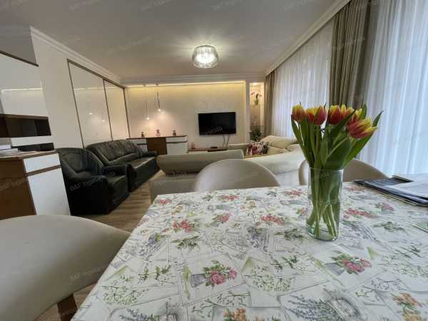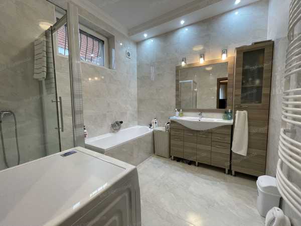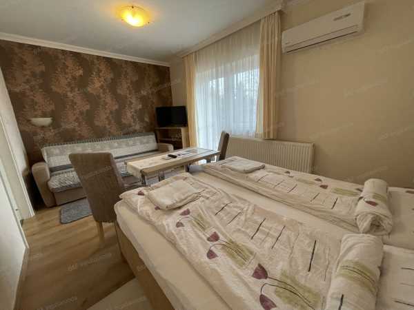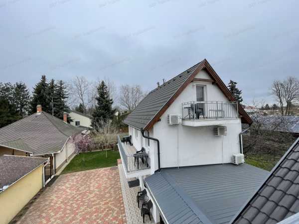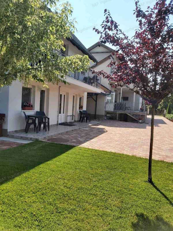 Azonosító: 1806 Hajdúszoboszlón a gyógyfürdő és a Mátyás király sétány közvetlen közelében kínálok eladásra egy teljesen újszerű állapotú 2 épületből álló modern családi házat, mely 2-3 generáció, de akár több család együttélésére, és vendéglátásra is tökéletesen alkalmas. Az ingatlan 2016-18-ban épült téglából. A belső terek kialakításának köszönhetően mind a szállóvendégek, mind az ott lakó tulajdonosok igazán otthonosan érezhetik magukat. Az első épületben található egy 92 nm-es, 2 szobás, nagy nappalis lakás. Igényes, időtálló burkolatok, egyedi beépített bútorok, kényelmes, világos terek jellemzik. A lakás egy hatalmas teraszról közelíthető meg, és erkély is tartozik hozzá, mely a nappaliból és a konyhából egyaránt megközelíthető. A lakás alatt egy 40 nm-es szuterén került kialakításra, melyben egy szoba, konyha, fürdőszoba, folyosó, valamint egy szauna is található. Ez az épületrész a lakásból és közvetlenül az udvarról is megközelíthető. A lakás fölött 4 különálló, egyenként kb 20 nm-es apartman található, valamint egy közös étkezőkonyha. Mindegyik apartmanban helyet kapott egy kis konyha és zuhanyzós fürdőszoba, szintén igényes, a mai igényeknek megfelelő burkolatokkal. Az apartmanokhoz erkély, illetve tágas terasz is tartozik. A másik épület 3 szinten, összesen 5 apartmanból áll. A földszinten és az emeleten 2-2, a tetőtérben egy, egyenként kb 20 nm-es, szintén konyhával, zuhanyzós fürdőszobával felszerelt apartman található. Az emeleti apartmanokhoz nagy erkély tartozik. A fűtésről mindkét épületben gázkazán gondoskodik puffertartállyal, radiátor hőleadókkal, illetve a legnagyobb lakásban padlófűtéssel is. A szuterén kivételével mindegyik apartmanban és a lakásban is hűtő- fűtő klíma került beépítésre. Az alacsony rezsiköltségről a tetőre felszerelt napelemek gondoskodnak, melyek akár teljes egészében ellátják árammal az ingatlant. A napelem paraméterei: 24 db Luxor Solar 330W panel került fel, 1 db Fronius Symo 7.0-3-M inverterrel. 8 kW. Az udvar nagyrészt térkövezett, több autó parkolására ad lehetőséget. A 2 épület között egy fedett autóbeálló található. Az épület mögött fedett udvari konyha, bográcsozóhely került kialakításra. Az ingatlan teljesen költségmentes, gyönyörű, újszerű állapotú. A vendéglátáshoz szükséges teljes felszereléssel együtt eladó. Tekintse meg, garantáltan bele fog szeretni! Lakáshitel ügyintézésben, kalkulációban tudunk soron kívül segíteni. Lakáshitel, babaváró hitel, lakásbiztosítás, ügyvédi háttér, minden egy helyen! Hívjon bizalommal és tekintse meg előre egyeztet időpontban!
