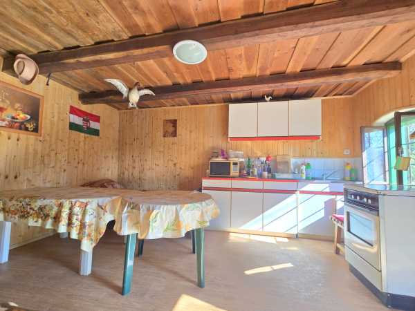 Ha valódi csendre és elvonulásra vágysz a természetben, ez az ingatlan ideális választás lehet. A Rádi-hegy nyugodt környezetében, szinte teljes elszigeteltségben található hétvégi ház tökéletes menedék a városi zaj elől. A környéken több kilométeres távolságban csak pincék találhatók, állandó lakos nincs. A környéken vadászterületek is találhatók, valamint túraútvonalak. Főbb jellemzők Telek: 2625 m² 1071 m² gyümölcsös és gazdasági épület 1554 m² rét Tulajdoni lapon: zártkert (kifüggesztéses eljárással megvásárolható) Helyiségek: 10 m² borospince (alsó szint) 10 m² hálószoba 16 m² konyha–étkező Műszaki állapot Tégla alap,tégla falak, cserép tető 2010-ben felújítás történt: villanyhálózat cseréje vízvezeték cseréje fa burkolat a szobákban Közművek és fűtés villany az ingatlanban vízellátás ciszternából szennyvíz derítővel megoldható fűtés fatüzelésű kályhával Megközelítés Kiskavicsos úton, majd kb. 200 méter földúton közelíthető meg. Legközelebbi település: Nemesrádó Nagyobb infrastruktúrával rendelkező település: Nagykapornak (8km)- orvos, benzinkút, szupermarket, iskola Irányár: 13.500.000 Ft
