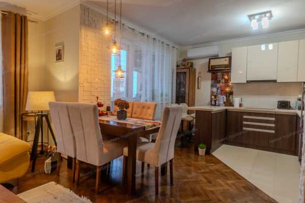 Eladó egy 77 m²-es, 2 szoba + nappalis, első emeleti, szigetelt téglaépítésű lakás Miskolc egyik legkedveltebb városrészében! A lakás 2017-ben teljes körű felújításon esett át: komplett fűtés-, víz- és villanyhálózat cserével. A fűtést és a meleg vizet Ariston kombi kazán biztosítja, a nyári hőséget pedig Gree inverteres klíma teszi kellemesebbé. A nyílászárók műanyagok, a beltéri és kültéri ajtók pedig igényes bükkfából készültek. A teljesen gépesített konyha és az egyedi kőburkolatok egy modern, stílusos otthon hangulatát adják. A társasház zárt udvarral rendelkezik, elektromos kapuval, ahol egy kialakított pihenőrész is helyet kapott — tökéletes hely kikapcsolódáshoz. A lakáshoz tartozik egy 15 m²-es, elektromos garázskapuval és előtetővel ellátott garázs is, amely a zárt udvarban található. A garázs ára: 11 millió Ft. Ne hagyja, hogy ez a remek lehetőség kicsússzon a kezéből! Hívjon még ma, és győződjön meg róla személyesen, milyen praktikus és szerethető otthont kínál ez a lakás.