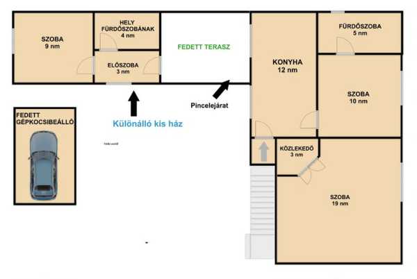 Kis ház, nagy nyugalom – hangulatos otthon a Zalai dombok között, Zalaegerszegen. Ha egy könnyen fenntartható, barátságos méretű Otthont keresel, ahol a természet közelsége és a város kényelme egyszerre elérhető, akkor ezt a házat érdemes megnézned. Zalaegerszeg egyik csodaszép, dombok közé simuló részén, a belvárostól mindössze 3 km-re, eladó ez a 49 + 16 m²-es, tégla építésű családi ház, amely 1–2 fő számára ideális, vagy fiatalok első saját otthonának kiváló választás lehet. A mérete miatt különösen azoknak ajánlom, akik nem szeretnének nagy házat fenntartani, mégis saját kertre és nyugodt környezetre vágynak. Az ingatlan főbb jellemzői Lakótér: 49 m² + különálló épület: 16 m² Telek: 312 m² (kb. 28 × 11 m) Elrendezése praktikus és világos: • konyha + étkező • 2 külön nyíló szoba • zuhanyzós fürdőszoba. A 2,7 méteres belmagasság kellemes térérzetet biztosít. A bejárat délkeleti tájolású, így a ház világos, napfényes. Külön kis ház a telken – vendégháznak vagy külön lakrésznek: A területen található egy 16 m²-es melléképület, amely jelenleg egy szobából + 2 kisebb helyiségből áll, de lehetőség van fürdőszoba kialakítására, így akár külön lakrészként is használható. Ez ideális lehet például: • vendégháznak • dolgozószobának • kiadásra • fiatal felnőtt családtagnak külön lakrésznek. Hangulatos udvar, fedett terasz: A 312 m²-es sík telek könnyen gondozható, így nem igényel sok munkát. A kertben: • fedett terasz biztosít kellemes pihenőhelyet • fedett autóbeálló áll rendelkezésre • konyhakert is kialakítható • kerti csap segíti az öntözést A telek jelenleg nincs körbekerítve. Szerkezeti jellemzők • építés éve: 1964 • falazat: tégla (B30 és B38) • alap: beton alap • födém: stukatúros födém • tető: cserép fedés, 2025-ben új gerenda és lécezés 2025-ben elvégzett felújítások A ház legköltségesebb műszaki munkái már megtörténtek: ✔ új vízvezeték rendszer ✔ új villanyvezetékek (réz) ✔ új hideg és meleg burkolatok ✔ tetőszerkezet teljes felújítása ✔ szigetelt padlás. Közművek és műszaki adatok Az ingatlan összközműves: vezetékes víz, villany, gáz és szennyvízelvezetés. Fűtés: gázkonvektor Melegvíz: villanybojler Nyílászárók: fa ablakok redőnnyel Az utcában optikai internet is elérhető. Pince A házhoz tartozik egy 12 m²-es, száraz, tégla boltozatú pince, amely kiváló tárolásra. Elhelyezkedés Az ingatlan csendes, természetközeli környezetben, Zalaegerszeg egyik szép részén található. • belváros: 3 km • buszmegálló: gyalog 5 perc • bolt, iskola, óvoda a közelben A környéket zöld dombok, kertek és nyugodt lakókörnyezet jellemzi. Kinek ideális? Ez a ház különösen jó választás lehet: ✔ egyedülállóknak ✔ fiatal pároknak első otthonként ✔ idősebbeknek könnyen fenntartható házként ✔ hétvégi háznak ✔ befektetésnek A kis alapterület miatt alacsony rezsivel fenntartható. Az ingatlan lakóház minősítésű, tulajdoni viszonyai rendezettek.