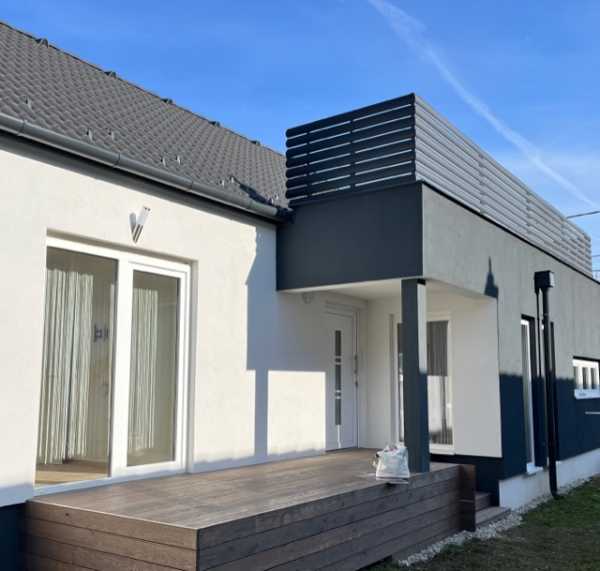 Zsirán, Soprontól mindössze 30 km-re kínáljuk eladásra ezt 2024-ben épült, könnyűszerkezetes, EMI-minősítéssel rendelkező családi házat, amely modern megoldásaival és tágas tereivel kínál kényelmes otthont. Főbb jellemzők: 4 nagy hálószoba közel 40 m²-es amerikai konyhás nappali-étkező korszerű infrafűtés helyiségenként szabályozható termosztáttal hűtő-fűtő klíma a kellemes hőérzetért 3 tágas terasz a pihenéshez tetőtér beépíthető, bővíthető élettér udvari beálló a parkoláshoz (az árban) B energetikai besorolás, energiahatékony megoldások H-tarifás óra elérhető A ház újszerű állapotú, szaniterekkel felszerelt, azonban bútorozatlan és konyhabútor nélküli, így az új tulajdonos saját ízlése szerint alakíthatja ki. - Vételár: 98.000.000 Ft - Hitel, CSOK, falusi CSOK igénybe vehető - 3% START hitellel első lakásként is megvásárolható! - Ez a modern, tágas családi ház ideális választás azoknak, akik az osztrák határ közelségét és a nyugodt környezetet szeretnék ötvözni egy igényes, új otthonnal. - Érdeklődés esetén hívj bizalommal: +36 70 942 4509