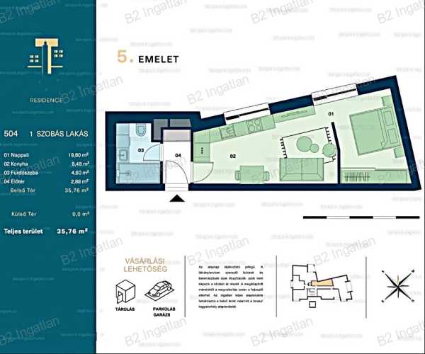 Eladó a VIII. kerület kedvelt, nyugodt részén, a Tisztviselőtelepen, a Vajda Péter utcában egy 36 m²-es, ötödik emeleti, udvari nézetű lakás. A lakás délnyugati fekvésű, világos, egyszobás kialakítású, ugyanakkor igény szerint másfél szobássá alakítható. Az ingatlan egy új építésű társasházban található, amelynek várható átadása 2026 májusa. Az épület A++ energiaosztályú, lifttel felszerelt, korszerű műszaki megoldásokkal készül. Műszaki jellemzők: – monolit vasbeton szerkezet – háromrétegű hőszigetelt nyílászárók, redőny előkészítéssel – központi VRF rendszerű padlófűtés – hűtés előkészítés fan-coil rendszerhez – minden fogyasztás egyedi mérőórákkal Belső kialakítás: – fürdőszobában kerámia burkolatok, porcelán szaniterek, beépített tartályos fali WC – elektromos törölközőszárítós radiátor – nappaliban laminált parketta vagy vinyl burkolat – konyhában mosogatógép csatlakozás (konyhabútor és gépek nélkül) Opcionálisan vásárolható: – tároló: 700 000 Ft / m² – fedett teremgarázs hely: 8 000 000 Ft / db – felszíni parkoló: 7 000 000 Ft / db A lakás udvari elhelyezkedésének és délnyugati tájolásának köszönhetően világos és csendes, modern műszaki tartalommal és alacsony fenntartási költségekkel. További kérdéseivel, illetve személyes megtekintés egyeztetésével kapcsolatban várom megtisztelő hívását. Üdvözlettel: Tari Tímea +36706777703