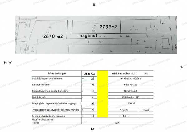 Nyíregyháza Felsőpázsit , műútról jól megközelíthető utcájában építésre kilalakított telkek , külön-külön vagy egyben eladók . A telkeket az utcából egy magánúton keresztől lehet megközelíteni , a közművek az utcában megtalálhatók. 1.telek 2792 m2 eladási ára : 12,00 MFt 2.telek 2670 m2 eladási ára : 11.50 MFt
