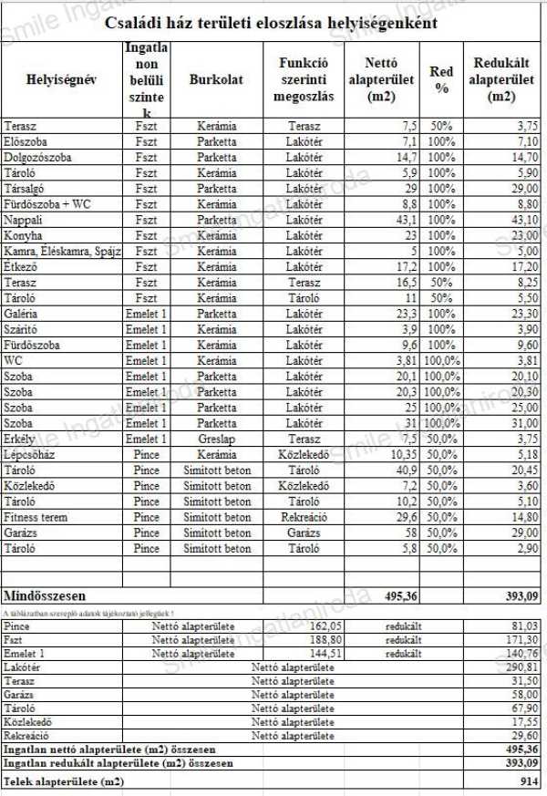 Különleges ház, különösen jó helyen... Nagy terekre, különleges ingatlanra vágyik saját fitness és kondíciónáló teremmel ? Megtalálta! Nyíregyháza tradicionális villanegyedében a főiskola közelében várja új tulajdonosát, ez a magas minőségben megépített, rengeteg extrával rendelkező, impozáns méretekkel megáldott, minden igényt kielégítő családi ház. A háromszintes (pince + földszint + emelet) , 495,36 nm nettó alapterületű családi ház 914 nm-es telken 1995-ben épült. Az ingatlan 5 szoba + nappalis, galériás, 2 fürdőszobás, családi ház háromállásos garázzsal, fűtött fitness és kondícionáló teremmel . A földszinti terasz biztosítja a kertkapcsolatot a lakóterekkel, az emeleti erkélyről pedig a ház előtti kertben gyönyörködhetünk. A pince nettó alapterülete 162,05 nm mely a háromállásos garázst és a fitness termet foglalja magában , de itt került elhelyezésre a gáz valamint a fatüzelésű kazán is. A ház földszinti nettó alapterülete 188,80 m2, Tagolása: terasz, előszoba, dolgozószoba, tároló, társalgó, fürdőszoba-wc, nappali, konyha, kamra, étkező, terasz és tároló Az emelet nettó alapterülete 144,51 m2, Tagolása: közlekedő(galéria), 4 hálószoba, erkély, háztartási helyiség , fürdőszoba, WC, A ház különlegessége a galériára vezető egyedileg gyártott faszerkezetű lépcső és a ház D-oldalát határoló nagyméretű hőszigetelt ablakok. A lakóház tégla szerkezetű főfalakkal, betonfödémmel épült, a belső teherhordó falak 30 cm vastagságúak, a válaszfalak 10 cm vastagságúak, a tető műemlék palával fedett. A nyílászárók kiváló hang- és hőszigetelésű, faszerkezetű ablakok, a szobáknál szúnyoghálóval szerelve. A beltéri ajtók és a beépített szekrények egyedileg készültek tölgyfából. A nappaliban a társalgóban és a szobákban magas kopásállóságú parketta, a többi helyiségben kerámiaburkolat került. Az egyedi tervezésű konyhabútor csúcskategóriás gépekkel felszerelt A fűtésről gázkazán gondoskodik, a hőleadás a hálószobák kivételével padlófűtéssel történik. A ház 500 nm-es udvara parkosított, dísznövényekkel beültetett, füvesített. Az öntözés fúrt kútról üzemeltetett automata öntöző rendszerrel működik. A háromállásos garázs járólappal burkolt, automata szekcionált kapuval nyitható. A házról készült fényképek, valamint az alaprajzok és a helyiségek eloszlásának részletes kimutatását a hirdetés mellékletei tartalmazzák. További információ kérésével vagy az ingatlan megtekintésével kapcsolatban, kérem forduljon hozzám bizalommal.