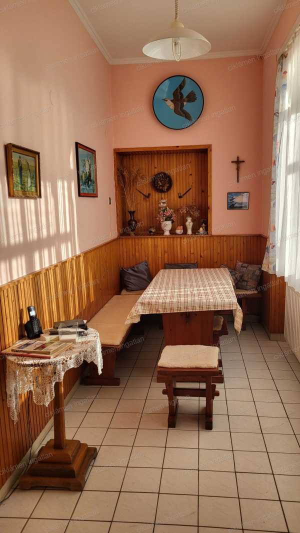 Egyházasfaluban jó állapotú 110 m2-es családi ház 1500 nm2-es telken eladó. 3 nagyobb szoba, nappali, tágas folyósó, konyha ebédlő résszel, spájz, fürdőszoba zuhanyzóval, wc-vel. A verandát is beépítették, ahol hatalmas ablakok engedik be a napfényt. 20 nm2-s kazánház wc-vel, pincerésszel, ahol kijárás van az udvarra. Vegyes tüzelésű kazán és cirkó kazán is adhatja a meleget. A kert gondozott, melléképületek vannak. 2 garázs szerelő aknával, műhely, állattartásra alkalmas épületek. Ásott kút, kerti kiülő az udvaron. Opcionálisan külön vásárolható mellé még 2000 nm2. Jelenleg egyben van még a nagy terület, a telkek kimérése folyamatban van. Az ingatlan nagyon jó elosztású, családok és párok számára is ideális választás A faluban a FALUSI CSOK igénybe vehető. Kiváló elhelyezkedésű, mert a 84-es főúthoz közel van. Buszmegálló 3 perc sétára, vasútállomás 10 percre van. Óvoda, bolt, orvos a faluban, bölcsőde a szomszédos faluban van. Ha hirdetésem felkeltette érdeklődését, és szeretne bővebb felvilágosítást kérni, esetleg személyesen is szeretnék megtekinteni az ingatlant, kérem keressen bizalommal! Megtekintéshez előzetes időpont egyeztetés szükséges! Igény szerint ügyvédi támogatást, ill. ingyenes hitel ügyintézést biztosítunk!