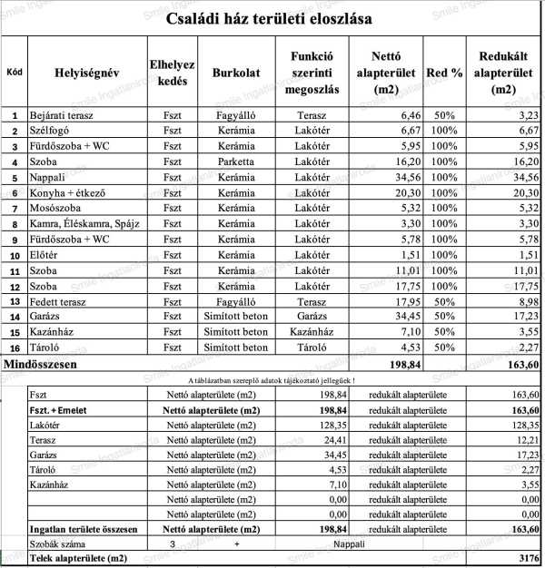 Fedezze fel Nyíregyháza, Nyírszőlős egyik legjobb kertvárosi részén ezt a 2021-ben jelentős műszaki és esztétikai felújításon átesett, földszintes, dupla komfortos családi házat! A tágas terek, a modernizált gépészet, a hatalmas, két utcára nyíló telek és a családias, természetközeli stílus teszi ezt az ingatlant igazán különlegessé – legyen szó nagycsaládos otthonról, generációk együttéléséről vagy akár befektetésről. Főbb jellemzők • Lokáció: Nyíregyháza, Nyírszőlős, Pannónia utca – kertvárosias, csendes, zöldövezeti környezet, NY-elkerülő út közelében. • Telek: 3176 m²-es, parkosított, két utcára (Pannónia és Ezerjó utca) nyíló, megosztható telek. Az Ezerjó utca felől külön építési telek is kialakítható, bevezetett vízzel, utcafronton gázzal és villannyal. • Lakótér: Nettó alapterület 198,84 m² Redukált alapterület 163,60 m2 (lakótér: 128,35 m², garázs: 34,45 m²), jól átgondolt, világos, tágas elrendezés. • Állapot: Jó, folyamatosan karbantartott, 2021-ben jelentős felújításokkal: • Teljes tetőcsere (garanciális cserepekkel) • Új gázkazán és 150 literes, gázzal fűthető melegvíz-tároló • Cserépkályha újrarakása • Garázsban lévő faelgázosító kazán felújítása (2000 literes puffertartállyal) • Terasz új burkolata • Új villanysütő, gáztűzhely, mosogatógép • Teraszajtó és nappali üvegfelületének cseréje (fa helyett műanyag) • Fűtés: Cirko padlófűtéssel és radiátorokkal, alternatív fűtési lehetőségként faelgázosító kazán és cserépkályha. • Komfort: Duplakomfortos, központi porszívó, szigetelt, járható padlás, sok beépített szekrény (marad), igény esetén a bútorzat nagy része is maradhat. • Sport és családi lehetőségek: Gumilapos sportpálya (kosárlabda palánk, kézilabda kapu), homokozó, stabil hintaállvány, 15 m³-es fatároló (kb. 5 m³ fával), két kutyakennel, ligetes, erdészeti fákkal telepített hátsó kert. Stílus és életérzés A ház klasszikus, kertvárosi, rusztikus stílusával, természetes anyaghasználatával, meleg színeivel és otthonos atmoszférájával igazi családbarát otthon. A nagy ablakoknak és a fedett terasznak köszönhetően a természet közelsége minden nap élvezhető. A modernizált gépészet, a felújított burkolatok és a korszerű nyílászárók a mai elvárásoknak is megfelelnek, miközben a hagyományos értékek és a családias hangulat is megmarad. Kiemelt előnyök • Két utcára nyíló, megosztható telek – befektetési lehetőség! • Alternatív fűtési módok, korszerű gépészet, cserépkályha, faelgázosító kazán • Központi porszívó, sok beépített szekrény, igényes burkolatok • Sport- és játszótér, ligetes kert, kutyakennel – tökéletes családoknak, állatbarátoknak • Részben bútorozottan is eladó Most Önön a sor! Ha egy valóban egyedi, tágas, felújított, természetközeli otthont keres Nyíregyháza kertvárosában, amely egyszerre nyújt modern kényelmet, időtálló értéket és családias hangulatot, ne hagyja ki ezt a lehetőséget! Jöjjön el, nézze meg, és találja meg új otthonát ebben a stílusos, minden igényt kielégítő házban! Keressen bizalommal a részletekért és a megtekintésért!