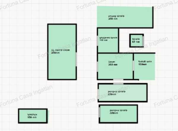 Kunadacson 25106 nm-es telephely 2000 nm felépítménnyel eladó. A major az épülő M8-as autópálya lehajtójától 12 km-re helyezkedik el GKSZ övezetben. Jó minőségű aszfalt bekötőúton megközelíthető. Kamionforgalom és teherszállítás lebonyolítására, logisztikai állomásnak, ipari, kereskedelmi, szolgáltató tevékenység folytatására alkalmas, minden feltételnek megfelel. Jelenleg fafeldolgozó és kereskedelmi tevékenységet folytatnak. A faipari és egyéb rakodógépek és alapanyagok külön megállapodás szerint megvásárolhatók. ÉPÜLETEK: - üzem 540 nm: kapu magasság 3,8 méter, tégla épület, szigetelt tető, szociális helyiségekkel ellátott - fedett gépszín180 nm - újépítésű üzem 300 nm , fél éven belül elkészül, tégla és szendvicspanel falazat, belmagasság 4,5 méter kapumagasság 4,5 méter - fedett gépjármű tároló 100 nm tégla oldalfallal - fedett anyagtároló 300 nm, 5 méter belmagasság, lemez oldalfalú - egyéb tároló 60 nm tégla falazatú - ponyva tároló 330 nm és 220 nm beton alapon, vas szerkezettel, belmagasság 4,5 méter, csúcsmagasság 6,5 méter kapumagasság 4,5 méter - konténer tároló 30 nm - iroda konténer 15 nm - Lindab garázs 36 nm - Lindab tároló 60 nm - kültéri tároló 300 nm - lakóház 150 nm lakhatáson kívül ügyfélfogadásra, bemutatóteremnek lehetőség kétrendbeli, új tető vegyes tüzelésű kazán puffertartállyal homlokzati szigetelt hőszigetelt fa nyílászárók 2 fürdőszoba, 2 gépesített konyha, klimatizált, KÖZMŰ ellátottság: - önálló trafóház biztosítja a villanyellátást, 3x420A amely tovább bővíthető 3x630A - egyedi fűtés: hűtő-fűtő klíma, kályha, vegyes kazán - városi víz - fúrt kút 1 km hosszú saját vezetékkel, 11 db tűzcsappal - gázvezeték a területtől 250 méterre EGYÉB: - elektromos úszókapu - tűzi víztározó 800 m³ - tűzcsap vezetékes vízről 10 méterre - mobil internet - kamerarendszer Az ingatlan adatai megbízónktól kapott információk alapján lettek rögzítve, értük felelősséget nem tudunk vállalni!