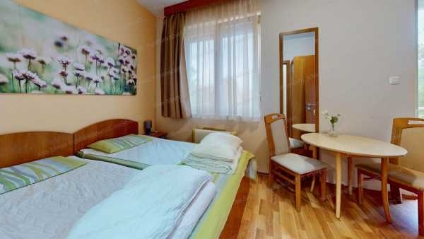 Hajdúszoboszló, gyógyfürdőtől 550 méterre, 2008-as építésű, liftes társasházban lévő, 48,61 m2-es két különnyíló szobával, külön-külön fürdőszobával, konyhapulttal másidik emeleti, nagy erkélyes lakás, 4 személy elhelyezésére alkalmasan, teljes szállodai felszereléssel eladó. A lakáshoz tartozik egy teremgarázs beálló, mely vásárlása kötelező 7,4 MFt-ért. A lakók díjmentesen használhatják a szálloda wellness részlegét (finn- és infra-szauna, gőzkabin, szabadtéri medencék). Készpénzes vevőket várunk.