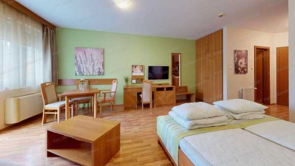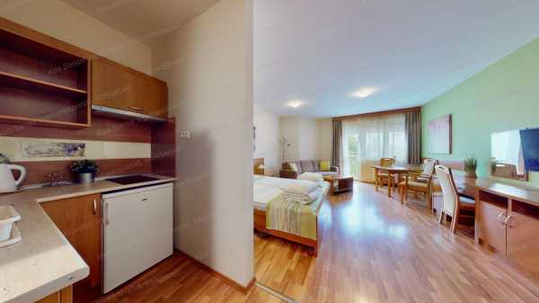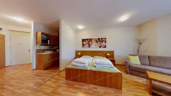 Hajdúszoboszló, gyógyfürdőtől 550 méterre, 2008-as építésű, liftes társasházban lévő, 42,47 m2-es, nagy szobával, fürdőszobával, külön WC-vel, konyhával. kamrával, másidik emeleti, nagy erkélyes lakás, 4 személy elhelyezésére alkalmasan, teljes szállodai felszereléssel eladó. A lakáshoz tartozik egy teremgarázs beálló, mely vásárlása kötelező 7,4 MFt-ért. A lakók díjmentesen használhatják a szálloda wellness részlegét (finn- és infra-szauna, gőzkabin, szabadtéri medencék). Készpénzes vevőket várunk.