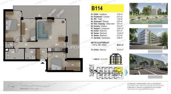 AZ UPDATE VIP INGATLANIRODA KINÁLATÁBÓL: SIÓFOK SZÉPLAK/EZÜSTPART HATÁRÁN, ÚJ ÉPÍTÉSŰ, VÍZPARTI, PANORÁMÁS, MEDENCÉS LAKÁS ELADÓ! AZONNAL BIRTOKBA VEHETŐ! A hirdetésben szereplő lakás paraméterei: Első emeleti lakás (A hirdetés képei az 1 emelettel fentebbi, elrendezésben teljesen megegyező lakásban készültek) -Lakótér: 84m2 -Erkély/Terasz: 35m2 -Újépítés -Közvetlen vízparti elhelyezkedés! -Minőségi tervezés, kivitelezés! -Lakás minősítés (5% Áfa) Külön megvásárolható: Felszíni gépkocsi beállóhely (11,25m2): 4.9MFt Saját tároló (3.48m2): 4.9MFt A lakások közvetlen vízparti elhelyezkedése mellett az igényes tervezés, a minőségi kivitelezés a remek kihasználhatóság és értékállóság is biztosított. Az ötemeletes apartmanház a Balatonra merőlegesen helyezkedik el, így biztosítva a lakásokból az örök balatoni panorámát boldog tulajdonosainak. A lakások nappalijából és hálószobáiból a korlátlan panoráma élvezetét ragasztott biztonsági üvegtáblás terasz korlát teszi még zavartalanabbá. A társasház tetején korlátozott számú exkluzív panorámás grill és napozó tetőterasz kerül kialakításra, egyedi vízvétel és áramvétel biztosítása mellet. Rövid műszaki leírás: -A beépítendő anyagok kiválasztásánál a magas minőség elengedhetetlen szempont volt. -Fokozott hangszigeteléssel ellátott lakáselválasztó falak -15 cm vastag külső hőszigetelés -A födémekben 4 cm vastag hő/hangszigetelő táblák Lift: 2 db 8 és 1db 13 személyes lift Nyílászárók: 3 rétegű üvegezés, külső oldalon antracit színben -Fűtés-Hűtés: LG Multi V-5 hőszivattyús rendszer -A szobákba, nappalikba felszerelt beltéri egységek léghűtést és légfűtést biztosítanak, melynek köszönhetően rendkívül gyorsan hűtik le vagy fűtik fel a helyiségeket. -A több generációs családok kikapcsolódása érdekében, a beruházás keretein belül gyermekjátszótér és kültéri medencék állnak rendelkezésre tulajdonosok számára. -Az ingatlan előtt húzódó több mint 3 km hosszú szabadstrand, további gondozott zöldterületekkel, parti sétányokkal, sportolási lehetőséget kínáló kölcsönző helyekkel, valamint igényesen kialakított büfékkel szolgálja ki az itt nyaralók igényeit. -A lakópark területére a biztonság érdekében egyedi azonosítás után lehet majd csak belépni. Bővebb információért, megtekintés egyeztetésért, kérem keressen a megadott elérhetőségeimen! UPDATE VIP INGATLAN IRODA további szolgáltatásai: Energetikai tanúsítvány készítés, Díjmentes-bank semleges hitelügyintézés, Ügyvédi háttér, Közjegyző, Földhivatali ügyintézés, Építész, Lakberendező.