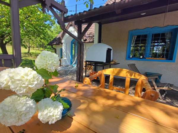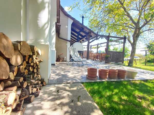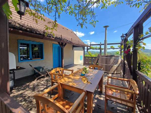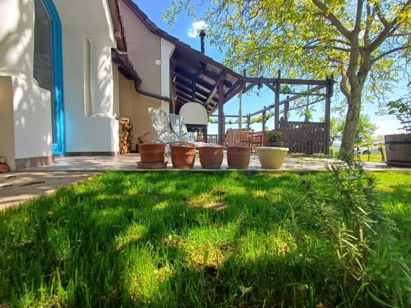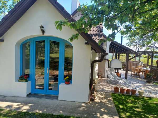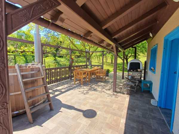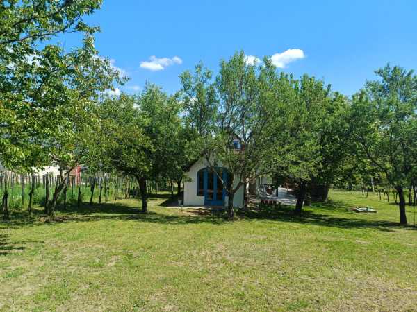 A családias hangulatú, vintage és egyben provence-i hangulatú ház Kisapátiban található, ami egyben a Balaton-felvidék gyöngyszeme. A település a Balaton-felvidéki Nemzeti Park területén fekszik, a ház a Szent György-hegy keleti dűlőjén található. Az ingatlanból indulva fel lehet jutni a - világon egyedülálló - bazaltorgonákhoz, míg a ház elejéről a balatoni tanúhegyek és a lankás szőlő dűnék panorámája tárul elénk. Az ablakokból rálátni az Árpád-kori Szent Kereszt kápolnára, amely szintén Kisapáti büszkesége. A házon külső borításként tájba illő kő is található. A földszintre egy nagy, új járólappal ellátott teraszon keresztül jutunk. A teraszon négyszemélyes, fatüzelésű dézsafürdő és kemence is található, amik az ingatlan részét képezik. A vintage hangulatú konyha étkezővel párosul, ahol tömör tölgyfából alakították ki a munkalapot és az egyedileg készített konyhabútort is. A konyhában vaskályhával is lehet fűteni. Ezen a szinten egy szoba és egy szintén teljesen újjáépített fürdő-vécé is található. A ház hátsó része egy csoda birodalom, ami akár télikert-, vagy műteremként is funkcionálhat. Akár baráti társaságoknak, művészeknek, családoknak is kiváló, mivel hangulata nyugalmat áraszt, több oldalról, különböző nagyságú ablakokból árad be ide a fény. Ezen helyiség nagy belmagasságú, a belülről is látható, „A” alakú tetőszerkezetet fával borították. A félemeleten található egy parkettáshálószoba, melyből csodás kilátás nyílik a tanúhegyekre. Az emeleten szintén található egy szoba, ami légkondicionálóval ellátott. A ház alatt nemespenésszel borított pince áll, ami borászkodáshoz is tökéletes. A 90 négyzetméteres ingatlan (55m2 lakótér, 35m2 pince+előtér)egyedi bája a gömbölyű és a szögletes formák, valamint a finom faragványok, a bejárat feletti nap motívumok harmonikus váltakozásában rejlik, amitől egyben különleges, de mégis tájba illő hatást kelt az épületegyüttes. Az ingatlanhoz 15 sor kb. 600 tő kordonos olaszrizling szőlő tartozik, aminek végében számos gyümölcsfa található. A ház körüli lugasokon csemegeszőlő fajták adják a finom gyümölcsöt, az árnyékot és hangulatot. A hátsó kertben is gyümölcsfák sorakoznak, amiket a permakultúra ökológiai folyamatai szerint gondoznak, ápolnak. Itt lehetőség van egy nagyobb gyepfelület, vagy konyhakert esetleg mindkettő kialakítására. A vizet 20m-nél mélyebb 70cm átmérőjű ásott kút biztosítja, a meleget vaskályha és elektronikus panelek adják. Az ingatlan minden oldalról bekamerázott, távolról is irányítható rendszerrel ellátott. Villanyáram 3x16A teljesítményű. Az ingatlan zártkert besorolású, kifüggesztés köteles. A szőlő művelésére, kertgondozásra igény esetén van munkaerő. A falu 600m,a szigligeti strand 9km, Tapolca bevásárló része 5km. A környék bővelkedik szebbnél szebb turista látványosságokban és túraútvonalakban, a hegyen megy át az Országos Kéktúra útvonala is. Ha felkeltette érdeklődését akkor kérem vegye fel velem a kapcsolatot és egy megbeszélt időpontban szívesen megmutatom az ingatlant. Simon Zsolt