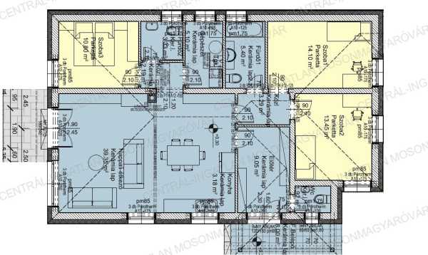 Az osztrák és a szlovák határtól néhány kilométerre, Hegyeshalomban 111-112 m2 lakóterületű, új építésű családi házak eladók, leköthetők. A házak 8 m2-es, bővíthető terasszal, fedett kocsibeállóval, fedett nyári-konyhával, saját kerttel eladók. A Centrál-Ingatlan az alábbi családi házakat kínálja. A hegyeshalmi családi házak jellemzői: -A családi ház hasznos alapterülete 111.16 m2. Tágas hálószobákkal és szintén tágas nappali-étkező-konyhával. -A családi házban extra nagy előtér található, mindenki elfér ha egyszerre ér haza a család vagy vendégek jönnek. -A családi házban: nappali + étkező + konyha, 3 jó méretű hálószoba, nagy előtér, vendég wc, 2 fürdő,+wc-vel, háztartási helyiség található. -A családi házaknak teljesen önálló kertje van. Az utcafronthoz közeli házhoz 480m2 saját telek tartozik. Az utcafronttól beljebb lévő házhoz 761m2 saját telek tartozik. Ezen kívül egy, (a fedett kocsibeállókhoz vezető) magánút is a tulajdonosoké lesz. - A fedett kocsibeállóban 2 autó is elfér, hátoldal zárt. Így könnyen garázzsá alakítható. Ami a nyári-konyha/grillteraszról is elmondható. -A telek adottságai miatt a beépítése ideálisan kihasználható. Az összesen 1425m2-es telken bőséges hely jut mindenre. -A lekötéstől számítva akár 3-8 hónapon belül is átadásra kerülhetnek a családi házak, meghirdetett emelt szintű fűtés-kész állapotban. -A ház kiváló minőségű anyagok felhasználásával készül. Több referencia ház készült már, a magas minőség garancia. -30-as porotherm rendszerű külső falazat, 20 cm-es homlokzati szigetelés. Aljzatba 13cm, födémbe 30cm szigetelés kerül. -3 rétegű üvegezésű, Kömmerling műanyag nyílászárók, extraként az ár tartalmazza a rejtett tokos alumínium, hőszigetelt, motoros redőnnyel. -Kondenzációs gázkazánnal, 5 rétegű alumínium betétes műanyag csövezéssel, padlófűtéssel stb. Az ár tartalmaz továbbá két klímának kiállást/előkészítést és a nappaliban egy kandallókéményt is! -A feltüntetett ár fűtés-kész ár. Kívülről teljesen kész. A terasz igény szerint bővíthető. A ház kulcsrakész befejezését is lehet kérni. -EXTRÁK: hőszigetelt, motoros alumínium redőnyök; 2 autónak fedett kocsibeálló (könnyen garázzsá alakítható), fedett nyári-konyha/grillterasz; klíma kiállások; Schiedel kandallókémény; gáztűzhely vagy villanytűzhely lehetőség a konyhában; napelem előkészítés, riasztó előkészítés; stb. -A környéken több referencia munka is árulkodik a kiváló minőségről. -CSOK, kamattámogatott hitel igényelhető a házakra! Az árak: A épület 186.000.- Euró, B épület 216.000.- Euró. Forintos ár az árfolyamtól függően változhat. Amennyiben a Hegyeshalomban épülő családi házak valamelyike, vagy bármely a kínálatunkban található lakás felkeltette érdeklődését, keressen a megadott elérhetőségeken!