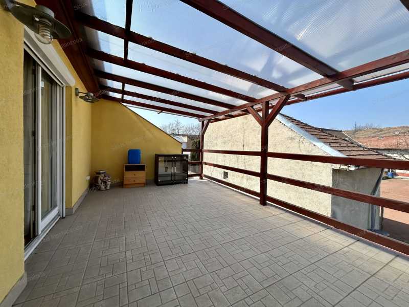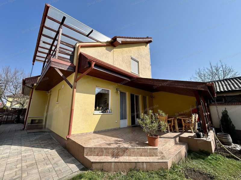 ÁTMENŐ FORGALOMTÓL MENTES, CSENDES MELLÉKUTCÁBAN LÉVŐ, 2003-BAN ÉPÜLT, SZIGETELT, JÓ ÁLLAPOTÚ CSALÁDI HÁZ Az ingatlan stabil beton alappal rendelkezik, a tűzfala külön van a szomszédtól és ytong téglából épült, a többi fal könnyűszerkezetes és szabályos rétegrenddel készült. Ideális választás lehet nagyobb családok számára, ahol minden családtagnak külön élettér biztosítható. A két tágas terasz kiváló helyszínt nyújt pihenésre, családi összejövetelekre vagy baráti beszélgetésekre. Az elrendezésének köszönhetően a ház vállalkozási célra is jól használható, például irodának, rendelőnek, szépségszalonnak, oktatási vagy szolgáltató tevékenységhez, ahol fontos a több külön helyiség és a jól elkülöníthető terek. A fűtést kombi cirkó biztosítja, az alsó szinten padlófűtés, az emeleten radiátoros fűtés került kialakításra, fenntartása kedvező, a fűtésátalány mindössze 14.000 Ft, az áram és a vízfogyasztás fogyasztás alapján kerül elszámolásra. A ház mellett akár 3 autó számára is biztosított a parkolási lehetőség az udvarban. A kertben kialakított rész ideális sütögetéshez, grillezéshez. Minden bútor és gépesítés vételár részét képezi igény szerint. A ház elhelyezkedése közlekedési szempontból kiváló, több megálló is néhány perces sétával elérhető: 2–3 perc gyalog a 99-es busz – közvetlen kapcsolat a Blaha Lujza tér M irányába 4–5 perc gyalog a 151-es busz – gyors eljutás a KÖKI-hez 948-as éjszakai busz megállója kb. 3–4 perc sétára, így késő esti órákban is kényelmes a hazajutás A Határ út (M3 metró) busszal rövid időn belül elérhető, a belváros gyorsan megközelíthető. A környéken boltok, piac, iskola, óvoda, orvosi rendelő, gyógyszertár található, a mindennapi élethez szükséges szolgáltatások gyalogosan vagy pár megállóra elérhetők. Az ingatlan tehermentes és 1/1 tulajdonban van.