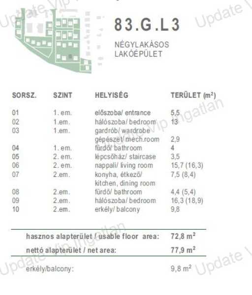 A siófoki Update Vip Ingatlaniroda kínálatából: Eladó luxus lakások Balatonfüreden – Kertvárosias környezetben a Balaton közelében A luxus villapark egy három hektáros, zöldövezeti területen épülő prémium lakópark, amely a Balaton közelségét, valamint a város adta lehetőségeket ötvözi a csendes, kertvárosias környezettel. A lakópark 27 épületből áll, melyek közt megtalálhatók önálló villa épületek, két-, három-, és négylakásos épületek. A kivitelezés már elkezdődött, a várható átadás 2025. év vége. A kivitelezés a fotókon látható készültségi szinten van. A hirdetésben szereplő ingatlan négylakásos épületben található, 3 szobás, két fürdőszobával felszerelt belső kétszintes lakás. Négylakásos épület jellemzői: Lakások mérete: 77-170 m² Extrák: Egyes lakások saját kertrésszel, mások panorámás tetőtéri terasszal rendelkeznek. Parkolás: Minden lakáshoz saját teremgarázs beállót vagy saját garázst tartozik. Felszereltség és Kényelmi Funkciók: Hőszigetelés: 15-20 cm vastag kőzetgyapot szigetelés a kiemelkedő energiahatékonyság érdekében. Fűtés/Hűtés: Lakásonként önálló hőszivattyús rendszer, amely a tökéletes hőmérsékletet biztosít egész évben. Nyílászárók: Fa nyílászárók, háromrétegű üvegezéssel a maximális hő- és hangszigetelés érdekében. Biztonság: Minden lakás biztonsági ajtóval van felszerelve. Redőnyök: Motoros redőnyök az egyszerű kezelhetőségért. Okosotthon: A lakások okosotthon rendszerrel felszereltek, amely lehetővé teszi a hűtés-fűtés, világítás, redőnyök és egyéb társasházi funkciók távoli irányítását. Az okosotthon rendszer igény szerint bővíthető és személyre szabható. Kiváló elhelyezkedés: A luxus villapark a Balaton és a város belvárosának közelségét egyesíti, miközben a csendes, zöldövezeti környezetben található. Néhány perces sétára található a közkedvelt Tagore sétány, strandokkal, üzletekkel és számos étteremmel, kávézóval. Az ingatlanok helyiségelrendezése változatos, így mindenki megtalálhatja az igényeinek leginkább megfelelő megoldást. A kivitelező célja a világos, élhető lakóterek tervezése, prémium minőségű szaniterek és burkolatok beépítésével egy zöldövezeti, parkosított, családias környezetben. Kérésére részletes műszaki leírást, lakáslistát, és alaprajzokat is biztosítunk. Ne hagyja ki ezt a páratlan lehetőséget! Legyen részese ennek a családias lakópark közösségének, és élvezze a Balaton és a város minden előnyét egy igazán exkluzív környezetben! Bővebb információért, megtekintés egyeztetésért, kérem keressen a megadott elérhetőségeimen! UPDATE VIP INGATLAN IRODA további szolgáltatásai: Energetikai tanúsítvány készítés, Díjmentes-bank semleges hitelügyintézés, Ügyvédi háttér, Közjegyző, Földhivatali ügyintézés, Építész, Lakberendező.