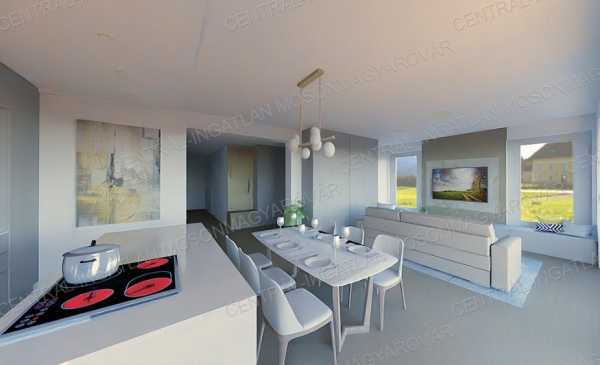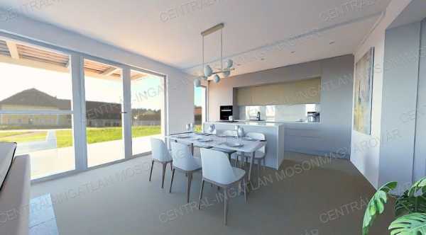 Egyedi ajánlat a CENTRÁL-INGATLAN kínálatában! Mosonmagyaróvár közvetlen közelében, közigazgatásilag Máriakálnokhoz tartozó Malomdűlőben, 723m2-es telken, csodás környezetben új építésű családi házat kínálunk! A családi ház akár már 2025. év végére átvehető lekötéstől függően. Érdemes ezt megnézni mert kevés az ingatlanpiacon az ilyen ajánlat. A átadás a lekötés időpontjától függően változhat. A családi ház földszintes, 92.4m2 lakóterületű + 19.14m2 terasz kialakítása lehetséges (a terasz igény szerint bővíthető is). A belső kialakítás kiváló. A nappali-konyha-étkező tágas (37m2), fürdőbe zuhanyzó, fürdőkád és wc is elfér, 3 jó méretű hálószoba, külön háztartási helyiség és vendég wc is van. A telek 723m2-es, parkosított, füvesített, körbekerített, az utcafronti kerítés az új tulajdonos feladat lesz. Szép környezetben, sok-sok zölddel, erdővel, folyóval, tóval a közelben. A műszaki paraméterek magasak, kizárólag I. osztályú anyagok felhasználásával épül a családi ház, tapasztalt kivitelező munkájával. Műszaki paraméterek: Hőszivattyús fűtés-hűtés készül, padlófűtéssel és 2 db fan-coil kiállással amit az ár tartalmaz. Készültségi szinttől függően, lehetőség van födémbe épített mennyezet hűtésre is. Ez a jelenleg legjobb fűtési és hűtési technológia. A porotherm rendszerű főfalakra 15cm hőszigetelés kerül, a monolit vasbetonfödém 30cm kőzetgyapot szigetelés kap. A külső nyílászárók 3 rétegű üvegezéssel készülnek, kívül antracit fóliás kerettel. Minden ablakra és a teraszajtóra zsalúzia vagy redőny későbbi felszerelésére toktoldók beépítésre kerülnek. A családi ház készültségi szintje: kívülről teljesen készre színezve kerül átadásra. Belső készültség: vakolt falak, víz-, csatorna-, villany- kiállások, fűtés-hűtés aktiválva. Igény esetén a vételáron felüli, teljes befejezést is vállalják, de az anyagokat, színeket, mintákat már az új tulajdonos választhatja ki. A közművek közül vezetékes víz, villany, tv-internet a házba bekötve. Kiépítésre kerül, földbe rejtett bio-házi szennyvíztisztító, amely gondozásmentes. Opciósan kérhető (feltüntetett ár nem tartalmazza): mennyezethűtés, terasz, teraszfedés, térkövezés igény szerint, kulcsrakész befejezés, kedvezményes áron konyha bútor, beépített bútorok készítése, stb. A telek fekvése, elhelyezkedése igazi természetközeli otthont biztosít az itt lakóknak. A Malomdűlő egy jól szabályozott lakóövezet, vízközeli családi házakkal és vízparti nyaralókkal. Ez biztosítja, hogy elég sok zöldterület maradjon ezen a részen hosszútávon. Aki olyan családi házban szeretne élni aminek a környezetében biztosan nem épülnek a jövőben társasházak, ipari és kereskedelmi létesítmények az itt fog lakni. A családi ház gyönyörű, zöld környezetben található, egyedi adottságokkal. A megadott elérhetőségen várom jelentkezését!
