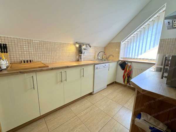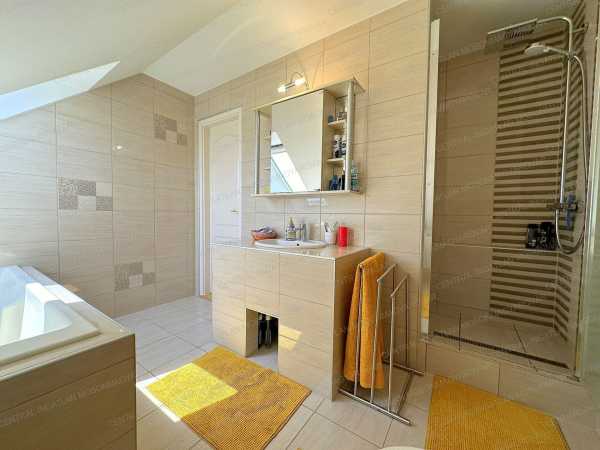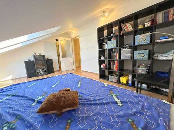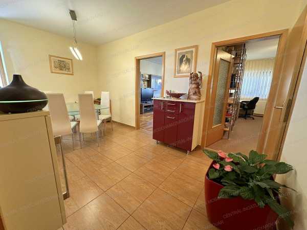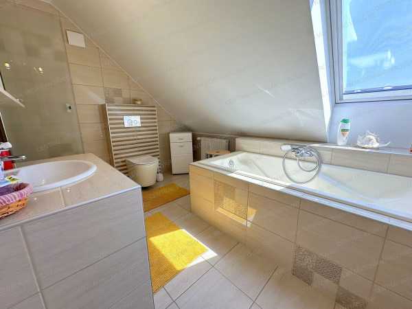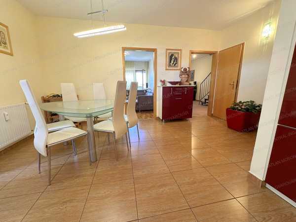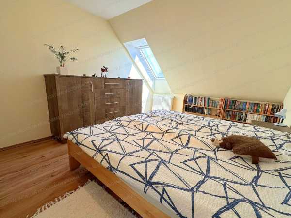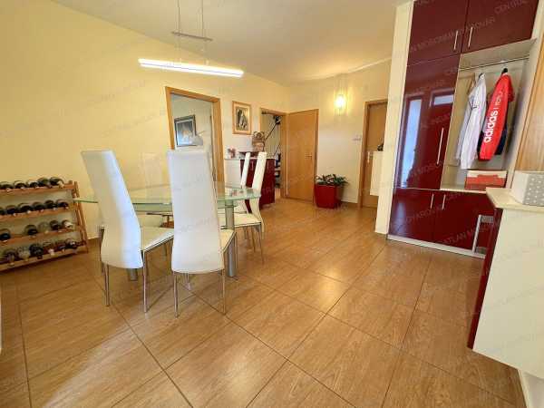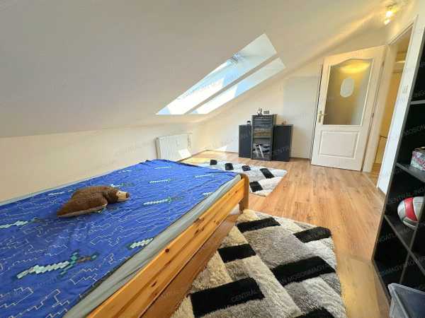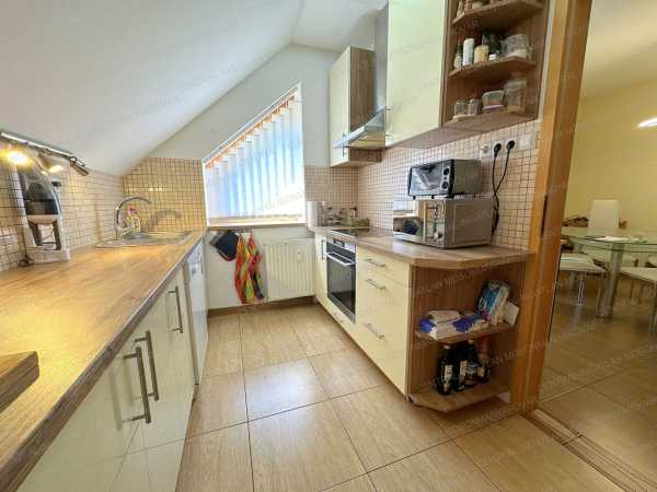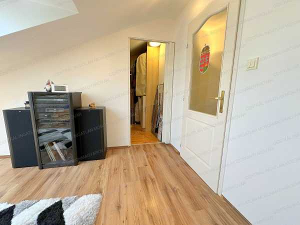 Kiváló minőség, két lakószint, 5 szoba, városközponti elhelyezkedés, beépített bútorokkal, gépekkel eladó! Mosonmagyaróváron, szuper elhelyezkedéssel, forgalommentes zsákutcában, társasházi környezetben kínáljuk ezt a 105m2 hasznos alapterületű lakást. A lakás a társasház 2. emeletén, a felső szinten található, teljes alapterülete a 124m2 + 9.9m2 erkély. Az 5 szobás lakás belső két szintes, klimatizált, két fürdőszobával, két wc-vel lett kialakítva. A nappali és az erkély déli-délnyugati fekvésű. Tágas helyiségek jellemzik, itt minden és mindenki elfér. Jellemzők: - A lakás alsó szintjén található nappali, étkező, önálló konyha (nem amerikai konyha), kamra, egy kisebb hálószoba, dolgozószoba, fürdő (káddal), wc helyiség. A nappaliból egy 10m2-es erkélyre tudunk kimenni amely minden évszakban napos. - A lakás felső szintjén két tágas hálószoba (16m2, 17m2), gardrób, fürdőszoba (káddal, zuhanykabinnal, wc-vel). A felső fürdő különlegessége, hogy a kádból a csillagokat is meg tudjuk figyelni a felette lévő ablakon keresztül. - A rezsiköltsége rendkívül alacsony, átlagos fűtésköltség mindössze 17.200.-Ft/hó. A közös költség is alacsony. A fűtést és a meleg víz ellátást távhő biztosítja, meleg víz órával, a fűtésnél hőmennyiség mérőkkel biztosított a pontos, fogyasztás alapú elszámolás. - A 2001-ben épület lakáson két nagyobb felújítás történt. 2009-ben padlóburkolatok lettek cserélve (járólap, laminált padló), az alsó szinten lévő fürdő és wc is teljesen újult. - 2022-es felújítás során: a felső szinten lévő fürdő lett teljesen felújítva, a tetőtéri ablakok lettek kicserélve új, velux műanyag ablakra amik külső hővédő rolóval és belső fényvédő rolóval szereltek. A hűtő-fűtő klíma ekkor került felszerelésre. A konyhabútor csere is ekkor történt, továbbá az felső szinti hálószoba szekrényei is 2 évesek. - A lakás alsó szinten lévő ablakai hőszigetelt üvegezéssel készült fa nyílászárók, mindenhol redőnnyel. Az emeleten műanyag tetőablakok hővédő és fényvédő rolóval. A belső ajtók fából készültek, furnérozott felülettel. - A társasház zárt udvarán lévő parkolóhelyeken lehet parkolni, de a társasház körüli ingyenes parkolók is használhatók. Közös tároló is rendelkezésre áll a kerékpároknak és egyéb kis járműveknek. A lakóközösség jó, együttműködő. Ide, szinte csak a bőröndöt kell hozni. Várom jelentkezését a megadott elérhetőségeken!