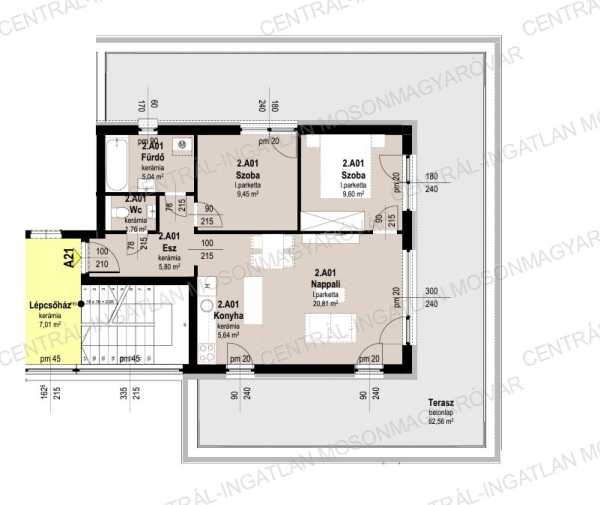 Hőszivattyús fűtés és meleg víz ellátás + hűtés rendszer!!! Új fejlesztésű, innovatív lakópark a Centrál-Ingatlan kínálatában. A város intenzíven fejlődő területén, családi házas környezetben újonnan épülő Duna Villaparkban lakások eladók. A kialakítás illeszkedik a környezethez. 12 lakásos épületek készülnek, így könnyen alakulnak ki a jó lakóközösségek. Az épület hőszivattyús fűtés-hűtés és meleg víz rendszerrel épül! Kiváló energetikai besorolással! A új építésű lakás jellemzői: - A B21-as számú második emeleti lakás hasznos alapterület 72.45 m2. A lakás határoló falain belüli terület 59.94 m2, + tetőterasz 62.56 m2 (hasznos alapterület: határoló falakon belüli terület + tetőterasz 20%-a). - A lakás helyiségei: nappali, amerikai-konyha, 2 hálószoba, fürdőszoba, wc, közlekedő/előszoba helyiségek, körpanorámás tetőterasz. • - A tervezésénél kiemelt figyelmet fordítottak az otthonok élhetőségére, a új lakások fekvésére, az ablakok nagy méretűek, így minden lakás világos, napos. A lakótömbökben kevés lakás készül, jó adottságokkal. • - Parkosított, füvesített környezettel kerül átadásra a lakópark. • - Az autóparkolók tudatosan a lakásoktól pár lépésre kerülnek kialakításra, ezzel is növelve a lakások csendességét. • - A több épülettömbből álló lakóparkba 2 emeletes (3 szintes) épületek készülnek. Igazodva a családi házas környezethez és növelve az ingatlanok későbbi értékét. Az épülettervezés modern, innovatív és a környezetbe illeszkedő. • - Minden lakáshoz erkély vagy terasz tartozik, a legfelső szinten lévő lakások panorámás, nagy teraszok készülnek. A földszinti lakásokhoz saját használatú kert tartozik. A kerthasználat árát a feltüntetett irányár tartalmazza. A saját kertek egységesen 30m2 területűek. • - A lakóparkból a belváros könnyen megközelíthető. 5-6 percen belül minden fontos kereskedelmi egység elérhető. Üzletek, iskola, óvoda, orvosi rendelő, posta, éttermek, buszmegálló, stb. A lakóparktól 15 perc gyaloglással elérhető a Mosoni-Duna ahol egy gyönyörűen kialakított sétány, strand és játszótér található. Pár perc alatt már a természetben lehet barangolni, ami kiváló hely egy délutáni sétára. • - A társasházat profi társasházkezelő cég üzemelteti gondoskodva a takarításról, fűnyírásról, karbantartásról. A földszinti lakások kertrészét is a kertészek tartják karban. -A lakások átadása emeltszintű, fűtés-készen történik, hogy mindenki a saját ízlése szerint tudja kialakítani a belső felületeket. -Igény esetén természetesen van lehetőség a kulcsrakész befejezést is kérni a beruházótól. -A homlokzat 15cm-es hőszigetelő rendszerrel burkolt, felületén szilikonos vakolattal, a tetőteraszok hegesztett műanyag, víz szigeteléssel lesznek ellátva. A szerkezet monolit vasbeton pillérvázas szerkezetű, 30-as Porotherm rendszerű kitöltő falazattal. -FONTOS a lakások között és a lakások lépcsőház felőli falainál speciális hanggátló fal készül + az aljzatokba 5-7 cm-es lépés-hangszigetelő akusztikai réteg készül a jó hangszigetelés érdekében. -Az ablakok, erkélyajtók 3 rétegű üvegezéssel, széles profillal szerelt nyílászárók. Minden ablak és erkélyajtó beépített tokos redőny előkészítést kap, ez tartalmazza a redőnytokot és a lefutó síneket. -Fűtés-hűtés, meleg-víz ellátás modern, nagy teljesítményű, levegő-vizes hőszivattyú fűtő-hűtő rendszer biztosítja épületenként, lakásonként egyedi méréssel és teljes szabályozhatósággal. A padlófűtés rendszer minden igényt kielégít, minden lakás padlófűtéssel szerelt. -A lakásokban hűtésre is van lehetőség, úgynevezett fan-coil beltéri egységgel. A hűtést a hőszivattyú végzi, minden lakásban elkészül a rendszer előkészítése. A beltéri egység felszerelése már a tulajdonosok feladata. -Minden átadott lakásokhoz 3 év teljes körű garancia jár, bizonyos szerkezetekre 8-15 év garancia. A - DUNA VILLAPARK építési ütemei folyamatosan készülnek, aktuális átadási időről kérjük érdeklődjön a megadott elérhetőségeken, az I. ütem átadása (2X12 lakás) 2026. I. negyedévben várható. A feltüntetett ár a parkolók árát nem tartalmazza. Most lakások teljes közműfejlesztés költségmentes, ami lakásonként több százezer forint megtakarítást jelent. Illetékmentes a lakásvásárlás. Ezt érdemes kihasználni. Akár egy konyhabútor árát is meg lehet spórolni. Amennyiben az új építésű lakások valamelyike , vagy bármely a kínálatunkban található lakás felkeltette érdeklődését, hívjon a megadott telefonszámon. Kollégám díjmentes, bank semleges hitel-ügyintézéssel áll rendelkezésére.