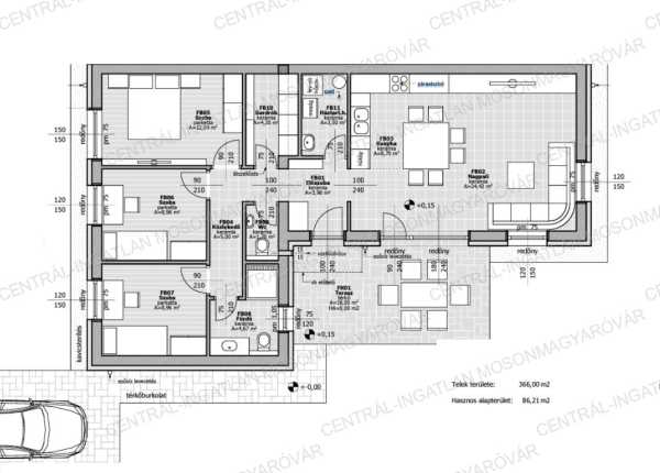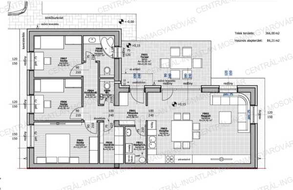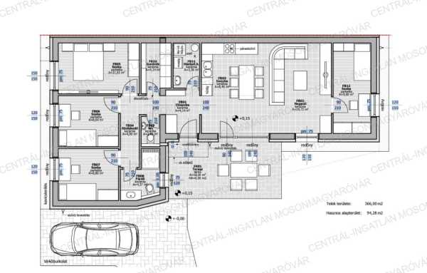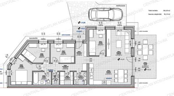 Mosonmagyaróváron a Duna lakóparkban, 366m2-es telken, új építési területen kiváló energetikai besorolású házakat kínálunk. A családi házaknál 3 -féle típusból lehet választani, igény szerint 4 vagy 5 szobával (nappali + 3 vagy 4 hálószoba). Hőszivattyús fűtés és meleg víz ellátás + hűtés rendszer kialakítás!!! Új fejlesztésű, innovatív családi házak itt, a Centrál-Ingatlan kínálatában. A választható családi házak méretei: -Hasznos alapterület: 86m2, lakótér 80m2 + terasz 18m2, 4 szoba (nappali + 3 hálószoba), emelt szintű, fűtéskész ár 366m2 telekkel: 79.8 millió Ft -Hasznos alapterület: 100.28m2, lakótér 94.28m2 + terasz 18m2, 5 szoba (nappali + 4 hálószoba), emelt szintű, fűtéskész ár 366m2 telekkel: 89.1 millió Ft -Hasznos alapterület: 102.34m2, lakótér 96.34m2 terasz 18m2, 5 szoba (nappali + 4 hálószoba), emelt szintű, fűtéskész ár 366m2 telekkel: 90.8 millió Ft A hirdetésben szereplő családi ház: -Hasznos alapterület: 100.28m2, lakótér 94.28m2 + terasz 18m2, 5 szoba (nappali + 4 hálószoba), emelt szintű, fűtéskész ár 366m2 telekkel: 89.1 millió Ft (Hasznos alapterület mérete = lakótér mérete + nem fedett terasz méretének 1/3-a.) -Az aszfaltozott utcában épülő, telekhatárra épülő házak új építésű környezetben készülnek. Mindegyik családi háznak önálló bejárata van, nincs átjárás vagy közös terület. A házakhoz 366m2 telek tartozik. A nagyobb alapterületű, 5 szobás házak saroktelekre épülnek. Mindegyik ház, hátsókertje autóval is megközelíthető, ahol a későbbiekben tároló is elhelyezhető. -A 4-5 szobás házak praktikus stílusú tervezés eredménye. A belső elosztás is ideális, kényelmes alapterületen minden szükséges megtalálható. A földszintes ház helyiségei: nappali-étkező-konyha, 3 vagy 4 hálószoba, továbbá fürdőszoba+wc, önálló wc, háztartási helyiség, gardrób helyiség, előszoba és egy közlekedő ahonnan a helyiségek nyílnak. -A nappaliból egy 18m2-es, térkő burkolatú teraszra tudunk kilépni és opcionális lehetőségként a terasz bővíthető és a jövőben befedhető. -Külső nyílászárók: Kömmerling Prémium típusú, 5 légkamrás profilú, meleg peremes műanyag ablakok, amelyek 3 rétegű üvegezéssel készülnek. Most EXTRA-ként a vételár tartalmazza a hőszigetelt, alumínium redőnyöket is. -A fűtést és a meleg vizet hőszivattyú biztosítja amely víz-levegő típusú. A ház padlófűtéssel kerül átadásra. A hőszivattyú hűtésre is alkalmas, a hűtés kiépítése benne van az árban, a fan-coil beltéri egységet az ár nem tartalmazza. -A ház 30-as Porotherm síkra csiszolt, habarcsmentes téglából készül, 15 cm-es homlokzati szigeteléssel. Aljzatban 15 cm hőszigetelés kerül. A családi házak monolitbeton födémmel, lapos tetős kivitelben készülnek. -A magas műszaki tartalom, kiváló anyagok felhasználásával, profi kivitelezésben készül minden. A jó tervezés eredményként a nappali-konyha 33-34m2, és a 3-4 szoba is elfér. -A jó méretű ablakok ezt támogatják, hogy sok fény jusson a belső terekbe, így a téli időszakban sok napenergiát is beengedhetünk a házba. A jellemzően keleti fekvésű terasz kiváló választás, a nyári melegben is jól használható mert délután már árnyékos. -A feltüntetett ár fűtéskész állapotra vonatkozik. Tartalmazza a telekrész árát, teljes külső befejezést, tereprendezést, belső fűtéskész állapotot. -A kulcsrakész befejezésre is van lehetőség. Készültségi szinttől függően változtatás, opcionális átalakítás, extra kérések is megvalósíthatóak. -A közműbeállásokat, villanyóra szekrényt, vízóra aknát tartalmazza a vételár, a közműórák költségét nem. Ezt a vevő saját nevére tudják igényelni amiben a beruházó segítséget nyújt. A hőszivattyúhoz H tarifás mérőóra igényelhető. -A telkekre egy családi ház épül telkenként oldalhatáros beépítéssel. Az azonos telekhatárra épült családi házak önálló alappal és egymástól két önálló főfalszerkezettel elválasztva épülnek, a rétegrend: 30-as tégla főfal-légrés-30-as tégla főfal. -Kérhető plusz költséggel: kerítés, térkövezés, belső munkálatok, napelem előkészítés stb. A nálunk vásárlóknak a lakások befejezéséhez, bútorozásához nagy értékű ajándékutalványt biztosítunk kiemelt partnereinknél! Remek választás, kiváló energetikai besorolás, alacsony rezsi, kiváló lokáció, minőségi kivitelezés. Tervezett átadás lekötéstől függően 2025. III.-IV. negyedév. A megadott elérhetőségeken várom jelentkezését!