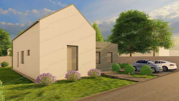Hőszivattyús fűtés és meleg víz ellátás + hűtés rendszer!!! Új fejlesztésű, innovatív családi ház itt, a Centrál-Ingatlan kínálatában. Mosonmagyaróvár fiatal kertvárosi részén új építésű, 104m2-es családi házat kínálunk. Igény szerint választható másik típusú családi ház is. Amely 131m2-es, emelet és garázs is tartozik hozzá. - A ház lakóterülete 104.45m2. A házhoz készülő terasz 12.6m2, igény esetén bővíthető és befedhető. -A kis forgalmú, aszfaltozott utcában épülő családi ház önálló 511m2-es telekre épül. A telek arányai ideálisak, 20 méter széles, a beépítés szabadon álló. Később lehetséges fedett kocsibeálló vagy könnyűszerkezetese garázs elhelyezése is. -A ház formája modern, letisztult stílusú tervezés eredménye. A belső elosztás is rendkívül ideális. A földszintes házban megtalálható a nappali-étkező-konyha mellett 3 db hálószoba, továbbá fürdő, 2 db wc, kamra és egy háztartási helyiség is. -A 42m2-es nappali-étkező-konyha helyiségből egy 12.6m2-es, védett teraszra tudunk kilépni. Innen a teljes kert belátható. -A műszaki tartalom magas. Kiváló anyagok felhasználásával, profi kivitelezésben készül minden. A házat egy tapasztalt, stabil vállalkozás készíti. -Külső nyílászárók: műanyag tokszerkezettel, 3 rétegű üvegezéssel készülnek, gyárilag fóliázott szürke külső felülettel. Sőt a redőny előkészítés is elkészül (beépített redőnytok, lefutó sínek). -A fűtés hőszivattyúval történik, az összes helyiségben padlófűtéssel. A hőszivattyú biztosítja a meleg víz ellátást is. A hőszivattyú hűtésre is programozott, nappaliban és szobákban Fan-coil berendezés részére megfelelő kiállás készül amit a vételár tartalmaz. Készültségi szinttől függően a mennyezethűtés is kialakítható. -A ház 30-as porotherm rendszerű téglából készül 15 cm-es homlokzati szigeteléssel. A nagy üvegfelületekkel minden helyiségben biztosított a sok fény. Tetőfedés nyeregtető részen ácsolt tetőszerkezettel, korcolt lemezfedéssel, lapostető részen műanyag szigetelő lemezzel készül. -A feltüntetett ár fűtéskész állapotra vonatkozik. Tartalmazza a telekrész árát, teljes külső befejezést, tereprendezést, belső fűtéskész állapotot. -A vételár tartalmazza a következőket: -térkövezett terasz, kocsibeálló, járda a bejáratig -esővíz szikkasztás kiépítését, az épület körül kertiszegély készül mosottköves feltöltéssel -hőszivattyú beüzemelés, fűtés és meleg víz ellátás aktiválása, stb. -Az építész alaprajz szerinti méretek „nyers” méretek, vakolatlan falak közötti távolságot jelentik. -Igény esetén napelemrendszer vagy ennek előkészítése is rendelhető, amely NULLA ENERGIA felhasználásúvá teszi a házat. -A kulcsrakész befejezésre is van lehetőség. -Kérhető plusz költséggel: redőny, plusz térkövezés, kerítés, fan-coil, mennyezethűtés, stb. A nálunk vásárlóknak a lakások befejezéséhez, bútorozásához egyedi kedvezményeket biztosítunk kiemelt partnereinknél! Remek választás, kiváló lokáció, minőségi kivitelezés. Tervezett átadás lekötéstől függően 8-10 hónapon belül megoldható. A megadott elérhetőségeken várom jelentkezését!