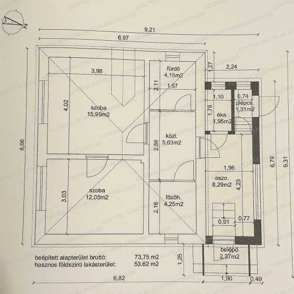 KIZÁRÓLAG A CENTRÁL-INGATLAN KÍNÁLATÁBAN! Mosonmagyaróvár, városközponti részen, kiváló elhelyezkedéssel, csendes utcában kínáljuk ezt a családi házat. A kis alapterületű családi ház szerkezetileg kiváló állapotú, jelenleg is lakható és érdemes felújítani is. Az elhelyezkedés miatt, könnyen és gyorsan eljuthatunk a közelben található boltokhoz, iskolához, óvodához. Gyalogosan elérhető szinte minden. - A 54m2 lakóterületű, földszintes családi ház fűtését gázkazán biztosítja, a meleg víz villanybojler készíti. Az épület alatt kb 30m2-es pince található. - A telek a házzal arányos méretű. Az 1040m2-es széles utcafrontú telekre két önálló családi ház épült egymástól távol. Az utcafronthoz közelebb épült házhoz 340m2 telekhányad tartozik, lekerítve, önálló bejárattal, nincs közös terület. A ház elhelyezése szabadon-álló. -A házhoz egy önálló garázs is tartozik. A garázs felújítandó, nagyobb autó is elfér benne. A garázs bővítésre is van lehetőség. - A családi ház magasföldszintes, alatta részben pince készült, itt található a gázkazán és a villanybojler is. - A családi házban 2 szoba, étkező, konyha fő helyiségek találhatóak. Kamra, fürdő wc-vel és előtér kaptak még helyet. A belső elosztás változtatható. Könnyen egybenyitható pl. az étkező a főző helyiséggel. A házban egy főfal található a többi fal szabadon módosítható. - A téli meleget központi-fűtés biztosítja radiátorokkal, amit gázkazán táplál. A házba egy hűtő-fűtő klíma is felszerelésre került. - Az épület tömör téglás, 40cm vastagságú falazattal készült. Jó vízszigeteléssel, stabil alappal. A bejárati ajtó és a nagy ablakok műanyagra lettek cserélve. A tető cserép fedésű, jó állapotú. - Kiváló szerkezeti és statikai állapotban található a családi ház. Érdemes egy átgondolt felújítással saját igényekre alakítani. - A közművek mindegyike bevezetve. Vezetékes víz, csatorna, gázvezeték, villany (nappali és éjszakai árammérő). A kertben ásott kút a közös telekhatáron is rendelkezésre áll. Amennyiben ez a családi ház vagy bármely kínálatunkban található ingatlan felkeltette érdeklődését keressen a megadott elérhetőségeken további információkért!