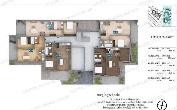 Kökény Projekt, új építésű társasház exkluzív értékesítési partnere a Centrál-Ingatlan! Az alábbi lakásokat KIZÁRÓLAG A CENTRÁL-INGATLAN KÍNÁLATÁBAN találja meg! Hőszivattyús fűtés és meleg víz ellátás + hűtés rendszer!!! Városközponti elhelyezkedés! Új fejlesztésű, innovatív társasház a Centrál-Ingatlan kínálatában. Kivételesen jó elhelyezkedés. Mindenhez közel, mégis csendes helyen. -Mosonmagyaróvár városközponti részén, kialakult környezetben, újonnan épülő társasházi lakások eladók/leköthetők. A kialakítás illeszkedik a környezethez. Két épületben, összesen 19 lakás épül, így könnyen alakulnak ki a jó lakóközösségek. -Az épület hőszivattyús fűtés-hűtés és meleg víz rendszerrel épül! Alacsony rezsivel, környezettudatos működéssel készülnek a lakások. -A lakásokra igénybe vehető a kedvezményes hitel, CSOK Hitel! Energetikai besorolása bőséggel megfelel a követelményeknek. A új építésű lakás jellemzői: - Az A0.02-es számú földszinti lakás hasznos alapterület 55.15m2. A lakás határoló falain belüli terület 49.88m2, + egy 10.54m2 terasz. Hasznos alapterület= lakás teljes terület + terasz terület fele. - A lakás helyiségei: nappali-konyha, hálószoba, fürdőszoba, önálló wc, előszoba helyiségek és erkély. - A tervezésénél kiemelt figyelmet fordítottak az otthonok élhetőségére, a új lakások fekvésére, az ablakok nagy méretűek, így minden lakás világos. A lakótömbökben kevés lakás készül, jó adottságokkal. - Parkosított, füvesített területtel, bekerítve kerül átadásra a Kökény Projekt társasház. - Az autóparkolók tudatosan a lakásoktól pár lépésre kerülnek kialakításra, ezzel is növelve a lakások csendességét. Kocsibeállók bőséggel készülnek (több mint ahány lakás lesz kialakítva). - A két épületből álló társasházban egy 1 és egy 2 emeletes (2 és 3 szintes) épület készül. Igazodva a környezethez és növelve az ingatlanok későbbi értékét. Az épülettervezés modern, innovatív, a környezetbe illeszkedő. - Minden lakáshoz majdnem mindegyikéhez erkély vagy terasz tartozik, a 2. emeleten, legfelső szinten lévő lakások panorámás hatalmas teraszok készülnek, egy exkluzív penthouse jelleget adva ezeknek a lakásoknak. - A társasház az autópályáról is könnyen megközelíthető. Városközponti elhelyezkedésből adódóan gyalogosan minden fontos kereskedelmi egység elérhető. Üzletek, iskola, óvoda, orvosi rendelő, posta, éttermek, buszmegálló, stb. A lakásoktól 5 perc gyaloglással elérhető a Mosoni-Duna ahol egy gyönyörűen kialakított vízparti sétány és játszótér található. - A társasházat a jövőben profi társasházkezelő cég üzemelteti gondoskodva a takarításról, fűnyírásról, karbantartásról. -A lakások átadása emeltszintű, fűtés-készen történik, hogy mindenki a saját ízlése szerint tudja kialakítani a belső felületeket. Igény esetén van lehetőség a kulcsrakész befejezést is kérni. -A homlokzat 15cm vastag hőszigetelő rendszerrel burkolt, felületén szilikonos vakolattal, a tetőteraszok hegesztett műanyag szigeteléssel lesznek ellátva. A szerkezet monolit vasbeton pillérvázas szerkezetű, 30-as Porotherm rendszerű kitöltő falazattal. FONTOS a lakások között és a lakások lépcsőház felőli falainál speciális hanggátló fal készül + az aljzatokba 5-7 cm-es lépés-hangszigetelő akusztikai réteg készül a jó hangszigetelés érdekében. -Az ablakok, erkélyajtók 3 rétegű üvegezéssel, széles profillal szerelt nyílászárók. Minden ablak és erkélyajtó beépített tokos redőny előkészítést kap, ez tartalmazza a redőnytokot, a lefutó síneket és az elektromos kiállást. -Fűtés-hűtés, meleg-víz ellátás modern, nagy teljesítményű, levegő-vizes hőszivattyú fűtő-hűtő rendszer biztosítja házközponti rendszerrel, lakásonként egyedi méréssel és teljes szabályozhatósággal. A padlófűtés rendszer minden igényt kielégít, minden lakás padlófűtéssel szerelt. A fürdőszobákba elektromos működésű törölközőszárítós radiátor is van. Így akár fűtési időszakon kívül is lehet a fürdőt fűteni vagy szárítani rajta. -A lakásokban hűtésre is van lehetőség, úgynevezett fan-coil beltéri egységgel. A hűtést a hőszivattyú végzi, minden lakásban elkészül a rendszer előkészítése. A beltéri egység felszerelése már a tulajdonosok feladata. Minden átadott lakásokhoz 3 év teljes körű garancia jár, bizonyos szerkezetekre 8-15 év garancia. A Kökény Projekt építése 2025 év végén indul, az ütemek folyamatosan készülnek, aktuális szabad lakásokról kérjük érdeklődjön a megadott elérhetőségeken. A feltüntetett ár a parkolók árát nem tartalmazza. A parkoló ára br. 990.000.-Ft. Átadás 2026 IV. negyedév. EXTRA KEDVEZMÉNY: A nálunk vásárlóknak a lakások befejezéséhez, bútorozásához egyedi kedvezményeket biztosítunk kiemelt partnereinknél! Most lakások teljes közműfejlesztése költségmentes, ami lakásonként több százezer forint megtakarítást jelent. + redőny előkészítés + wc helyiségben rejtett tartályos öblítőrendszer beépítése. Amennyiben az új építésű lakások valamelyike, vagy bármely a kínálatunkban található lakás felkeltette érdeklődését, hívjon a megadott telefonszámon. Vásárolna és szükség lenne hitelre is? Kollégám díjmentes, bank semleges hitel-ügyintézéssel áll rendelkezésére.