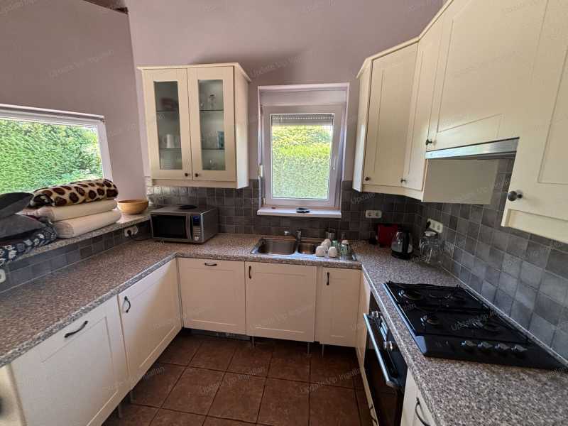 SIÓFOK SZABADIFÜRDŐN KÉTSZINTES, MEDENCÉS CSALÁDI HÁZ ELADÓ! A BALATONTÓL MINDÖSSZE 1000 MÉTERRE! Eladásra kínálunk Siófok Szabadifürdőn egy 166 m²-es, két szinten elhelyezkedő, igényesen kialakított, medencés családi házat. Az ingatlan rendezett, 504 m²-es parkosított telken fekszik, csendes lakóövezetben, mindössze kb. 10 perc sétára a szabadstrandtól. Az ingatlan kiváló választás állandó otthonnak, nyaralónak vagy akár befektetésnek is – jelenleg is sikeresen kiadásra került, a meglévő bérbeadási konstrukció igény esetén továbbvihető. FŐBB JELLEMZŐK: Lakótér: 166 m² Telek: 504 m² Teraszok: 2 db, részben fedett (elől és hátul) Parkolás: több autó számára alkalmas udvari beálló Fűtés: radiátoros és padlófűtéses rendszer, távolról vezérelhető Nyílászárók: alumínium redőny, szúnyogháló Riasztórendszer kiépítve ELRENDEZÉS: Földszint: – Nappali + étkező + konyha egy légtérben – 1 hálószoba – Fürdőszoba szaunával – Külön WC – Két terasz, az első teraszon 6 személyes jacuzzi Emelet: – 3 hálószoba (1 nagyobb, 2 kisebb) – Fürdőszoba WC-vel EXTRÁK: – Nyitott, saját használatú fürdőmedence – Öntözőrendszer – Kerti tároló / fészer – A ház teljesen bútorozott és gépesített – a beépített bútorok az ár részét képezik, minden további berendezés megegyezés kérdése A ház kialakítása és felszereltsége lehetővé teszi 8 fő kényelmes elszállásolását, így kiváló befektetési lehetőséget is kínál. További információért, megtekintés egyeztetéséhez kérem, keressen bizalommal! Az UPDATE VIP Ingatlaniroda szolgáltatásai: – Energetikai tanúsítvány készítése – Díjmentes, banksemleges hitelügyintézés – Ügyvédi és közjegyzői háttér – Földhivatali ügyintézés – Építész, lakberendező ajánlás
