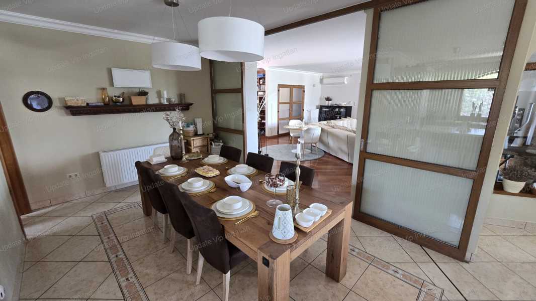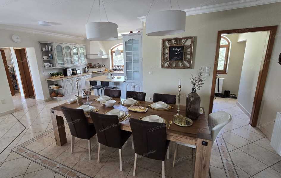 Siófok-Törekiben egy minden igényt kielégítő luxus családi ház várja új tulajdonosát! Ez az A++ energetikai besorolású ingatlan nem csupán egy otthon, hanem egy életstílus. A 290 m²-es alapterülettel rendelkező ház tágas terekkel, prémium minőségű kialakítással, valamint egy Balatonra néző panorámás terasszal biztosítja a lakók maximális kényelmét. Főbb jellemzők: Főépület: Nappali, hálószoba fürdőszobával + wc-vel, dolgozószoba, szoba, konyha, étkező, kamra, külön wc mosdóval, gardrób (2db), közlekedő, tusoló wc-vel, fedett előtér, szélfogó, télikert, garázs, háztartási helyiség, Terasz (80m2): Balatonra néző csodálatos kilátással Szuterén apartman (36.3m2): nappali és hálószoba egyben, fürdőszoba + WC Vendégház (50m2): amerikai konyhás nappali, hálószoba, fürdőszoba + WC Medence: 10m x 4m feszített víztükrű, fűthető napelemes rendszerrel, sóbontó fertőtlenítéssel és világítással Modern technológia és kényelem: Napelemrendszer (7 kW) és ipari áram (3x32A) Automata öntözőrendszer és fúrt kút Rehau központi porszívó és Daikin hibrid hőszivattyús fűtés Daikin inverteres klímák, Siemens és Miele konyhai berendezések Okosotthon funkciók, amelyeket távolról is vezérelhetsz Biztonság: 8 kamerás megfigyelő rendszer és internetes riasztórendszer őrző-védő szolgálattal Külső környezet: A 3376 m²-es telek 1500 m²-es parkosított résszel és gyümölcsössel biztosítja a természet közelségét. Emellett további 4000 m² bérelhető terület áll rendelkezésre egyedi megállapodással. A ház különleges elhelyezkedése a természetvédelmi terület szomszédságában garantálja a nyugalmat és a zavartalan pihenést. Vételár: a teljes berendezéssel együtt! Ingatlan beszámítás lehetséges, elsősorban Balaton, Budapest és Debrecen környékén. Ne hagyja ki ezt a ritka lehetőséget! Ha szeretné megtekinteni ezt az exkluzív otthont, keressen bizalommal! Bővebb információért, megtekintés egyeztetésért, kérem keressen a megadott elérhetőségeimen! UPDATE VIP INGATLAN IRODA további szolgáltatásai: Energetikai tanúsítvány készítés, Díjmentes-bank semleges hitelügyintézés, Ügyvédi háttér, Közjegyző, Földhivatali ügyintézés, Építész, Lakberendező.