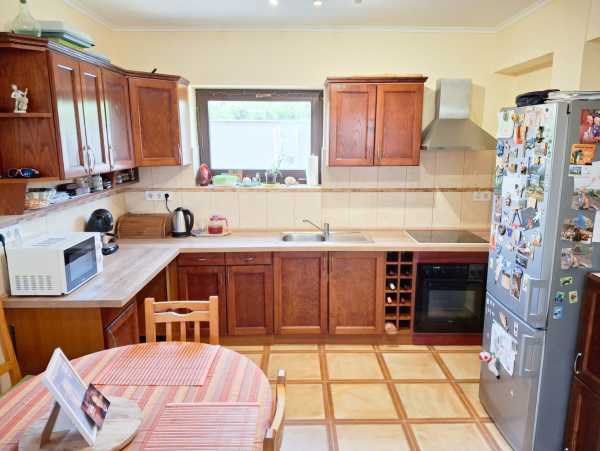 Bővebb információ és megtekintés: Tóth Péter +36302916550 Pomáz Margitliget részén, nagyon csendes mellékutcában 380 m2-es önálló telken 4 szobás, két szintes ikerház-fél eladó. A ház 2017-ben, 38-as porotherm téglából épület, 10 cm-es hőszigeteléssel, 3 rétegű fa ablakokkal, a lépcsőházban bevilágító tetőablakkal. Állapota újszerű. A lakás földszintjén amerikai konyhás nappali étkezővel, kamra, egy háló, zuhanyzós fürdő, wc, és előszoba került kialakításra, míg a tetőtérben további két szoba, egy gardrób és egy kádas fürdő. A tetőtéri egyik szoba nagy, kettéosztható. Fűtése cirkó gázkazánnal, padlófűtéssel megoldott. A lakáshoz a saját telkén belül két gépkocsi parkolására alakítottak ki helyet. A ház kellemes méretű terasszal is rendelkezik.