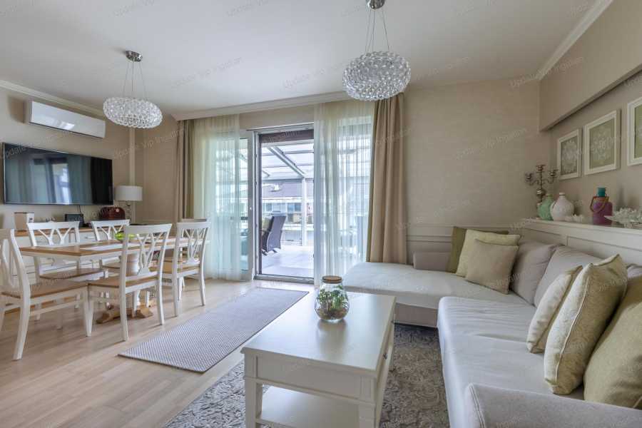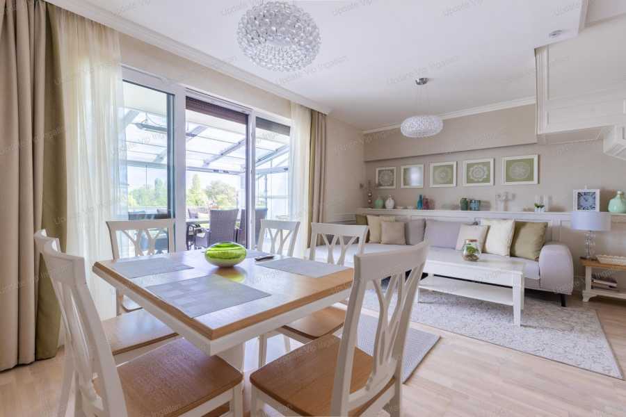 Update VIP Ingatlaniroda kínálatában – ELADÓ LUXUSLAKÁS a Balaton partján! Ez a 128 m²-es, belső kétszintes, igényesen megálmodott és berendezett otthon minden részletében a kényelmet és a luxust szolgálja. Alsó szint: Tágas nappali–konyha–étkező 2 hálószoba Elegáns fürdőszoba Kényelmes előszoba A nappaliból közvetlen kijárat nyílik a hatalmas, fedett és teljes hosszában beüvegezett panorámás teraszra, amely egész évben használható. A teraszon 2 rattan ülőgarnitúra, valamint elektromos árnyékoló és svéd mennyezeti melegítők gondoskodnak a kényelemről. Emelet: 1 hálószoba 1 fürdőszoba Nagy méretű, panorámás, üvegezett terasz Extrák, amik igazán különlegessé teszik az ingatlant: Padlófűtés a teljes lakásban Fujitsu klíma minden szobában (hűtő–fűtő) Miele háztartási gépek Rejtett világítások, prémium belsőépítészeti megoldások Méretre gyártott bútorok, melyek a vételár részét képezik (beleértve a terasz alumínium bútorait is) Teljesen felszerelt konyha – beköltözéshez valóban elég egy bőrönd! Elektromos alumínium redőnyök és szúnyoghálók minden ablakon Svéd fa padló a földszinten, emeleten prémium laminált burkolat Kültéri konyha hideg–meleg vízzel ellátva További előnyök: 2 tároló és egy kocsibeálló (megvásárolható 20 M Ft ) Az udvarban közös medence balatoni panorámával A lakás nyaraló minősítésű, cég néven van Akik a Balaton közvetlen közelében, nyugodt és exkluzív környezetben szeretnének élni vagy pihenni annak tökéletes választás állandó otthonnak és prémium nyaralónak egyaránt. Amennyiben Ön is beleszeretett ebbe a kivételes ingatlanba, hívjon bizalommal! Bővebb információért, megtekintés egyeztetésért, kérem keressen a megadott elérhetőségeimen! UPDATE VIP INGATLAN IRODA további szolgáltatásai: Energetikai tanúsítvány készítés • Díjmentes, banksemleges hitelügyintézés • Ügyvédi háttér • Közjegyző • Földhivatali ügyintézés • Építész • Lakberendező. Érintésvédelmi Felülvizsgálat (Teljes kínálatunkat megtekintheti az Update Vip Ingatlan weboldalon.)